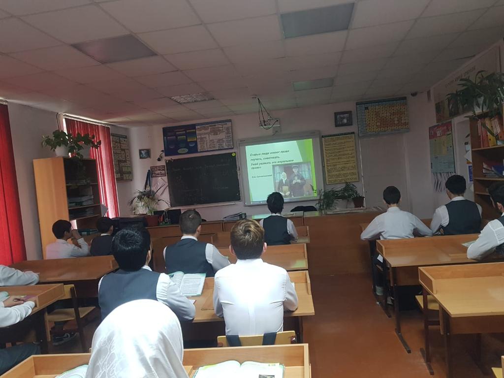 Сегодня, 30 ноября в рамках профилактики и противодействию жестокого обращения с пожилыми людьми Мавсарова С.А., учитель биологии провела в 9 «А» классе открытый урок, направленный на формирование общественного мнения о недопустимости жестокого обращения с пожилыми людьми, включающий информирование о физиологических и психологических особенностях старения, об организации различных видов помощи пожилым людям.