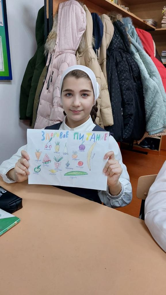 В завершении урока с целью развития познавательной активности и творческих способностей ребята нарисовали плакаты «Здоровое питание»