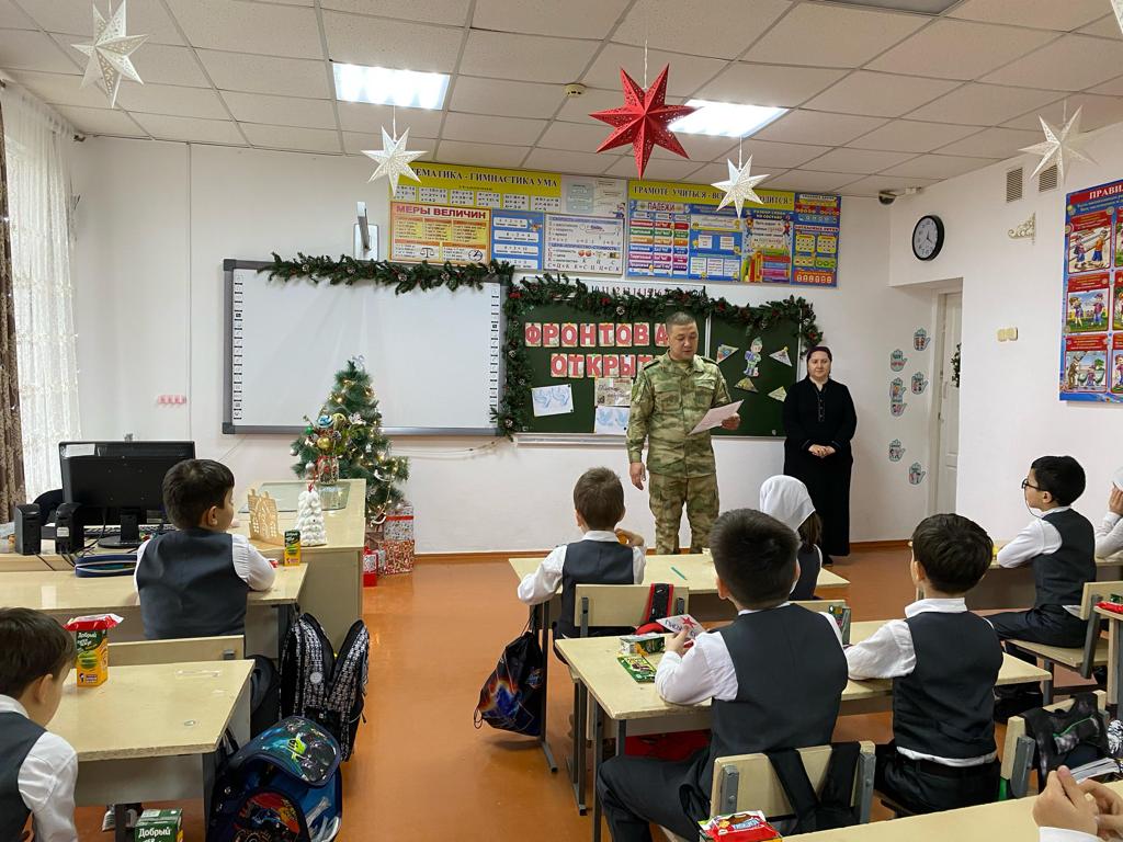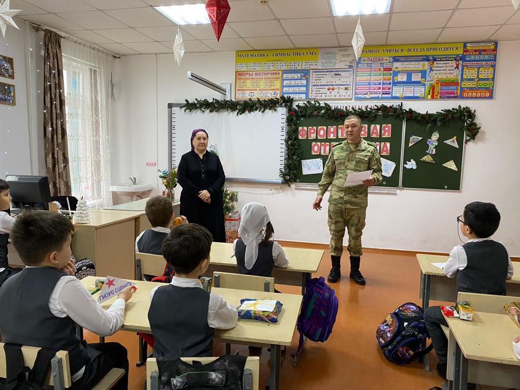На урок во 2б класс МБОУ «Шелковская СОШ №3» Аушева Т.Т. пригласила отца обучающего - бойца специальной военной операции.