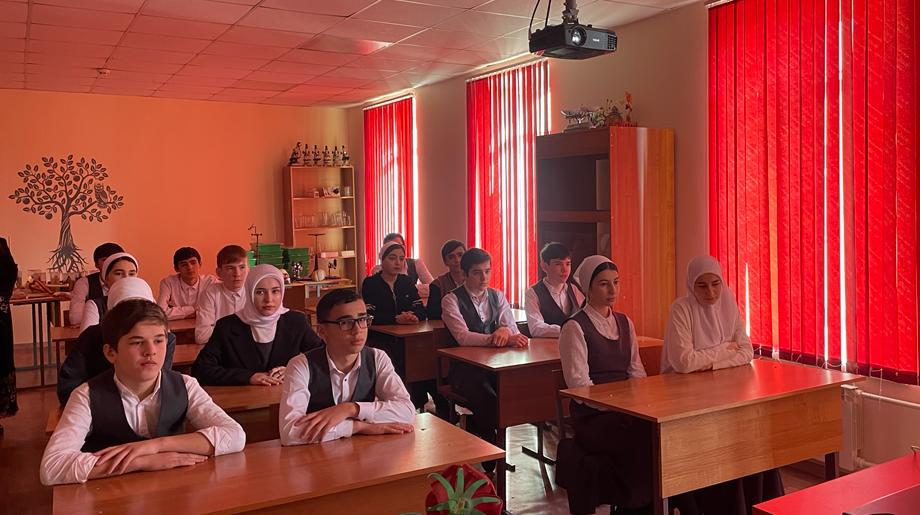 В МБОУ «Шелковская СОШ №3» прошел просмотр видеоматериала: «Кишин во1 Хьаьжи»