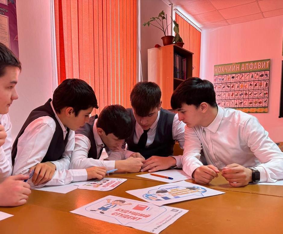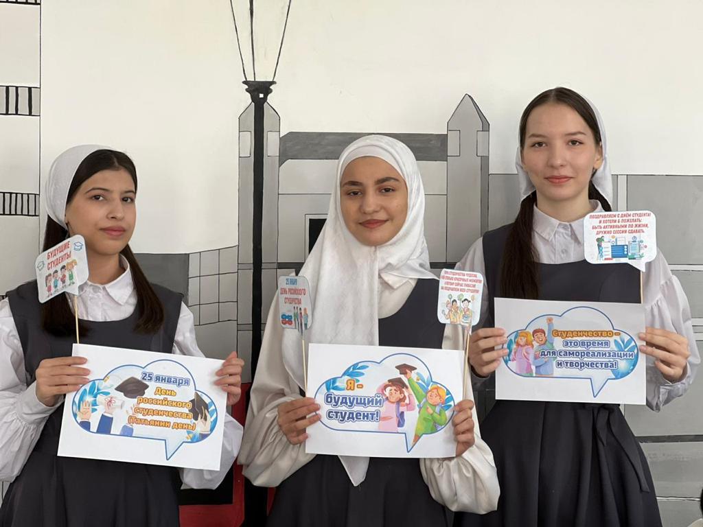В ходе мероприятия Аминат Алхазуровна познакомила обучающихся с историей праздника Российского студенчества. Совсем скоро им предстоит определиться с какой профессией они свяжут свою жизнь. Для того, чтобы узнать о том, в какой сфере деятельности ребята будут наиболее успешны, ученики прошли профориентационный тест.