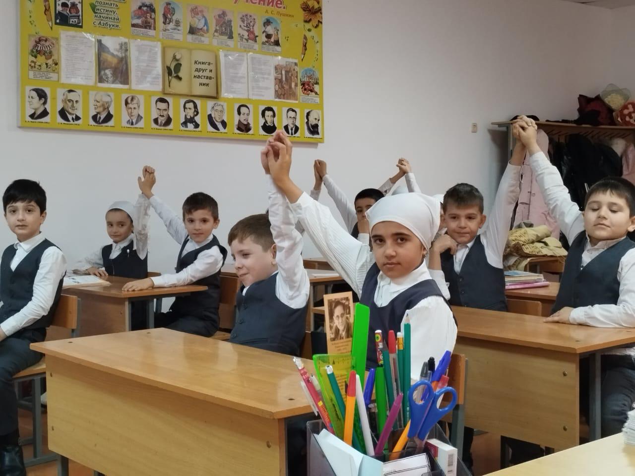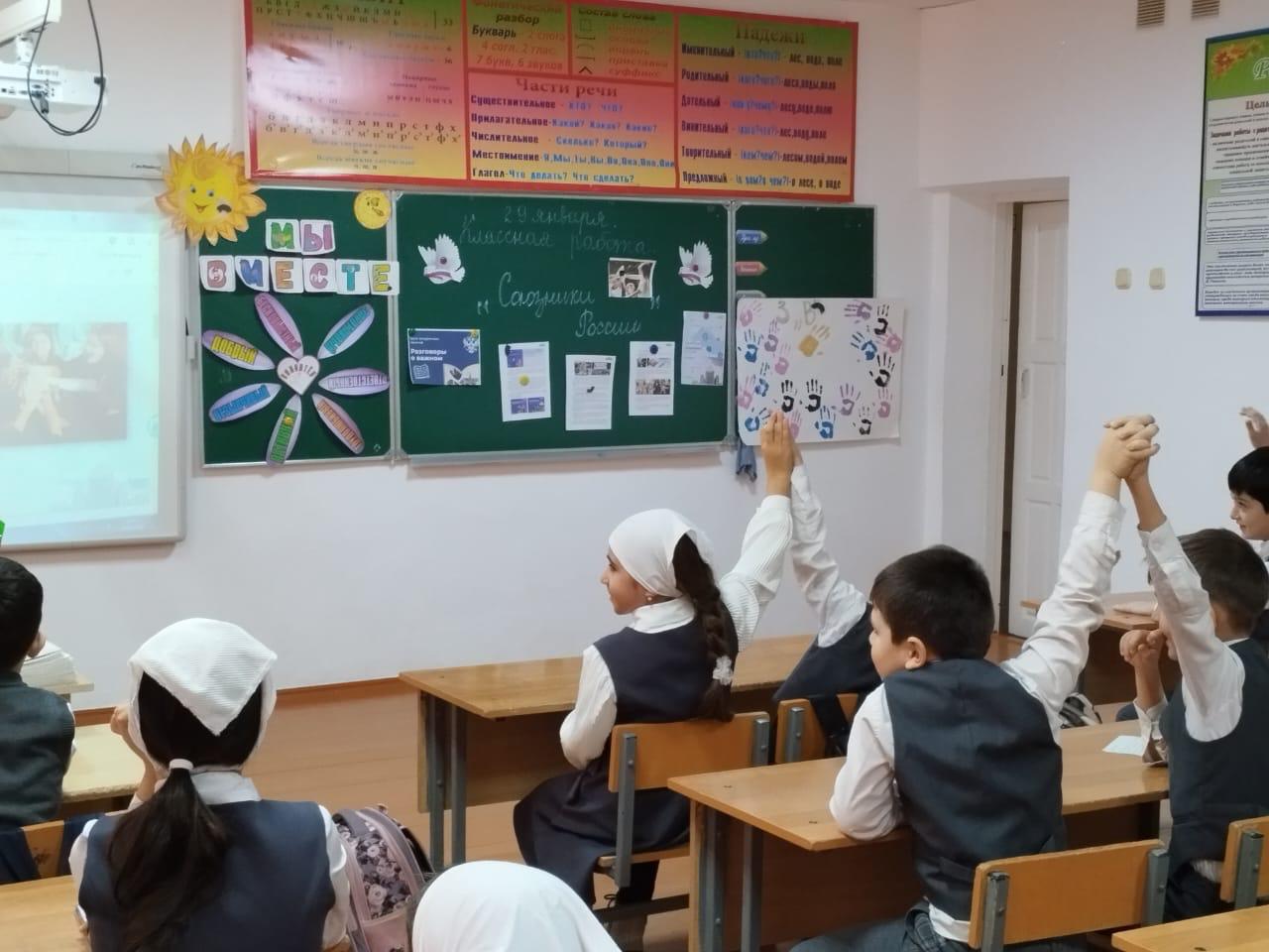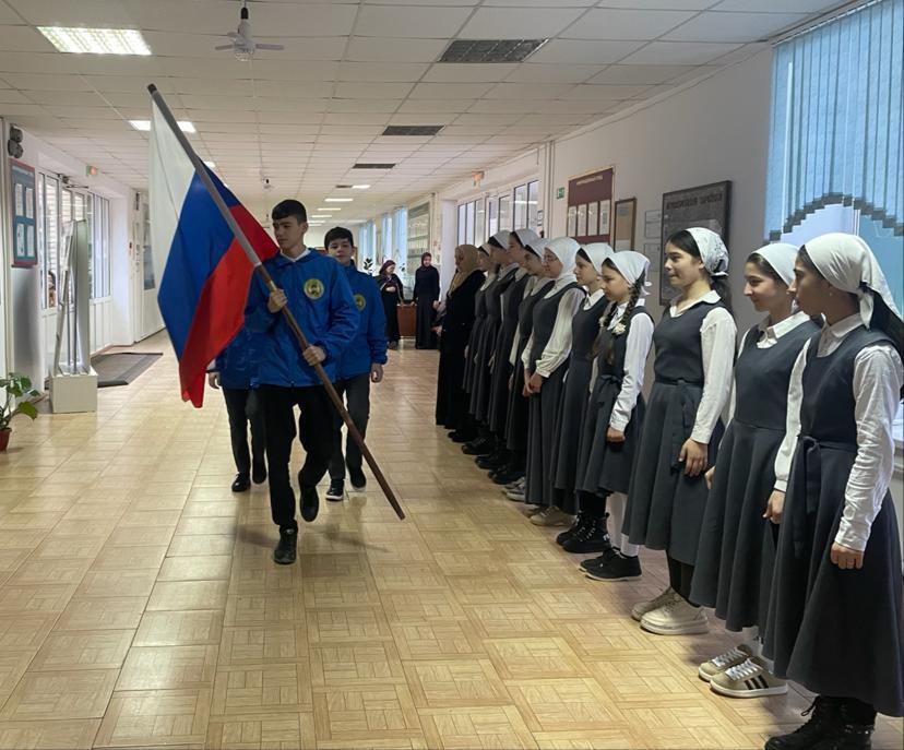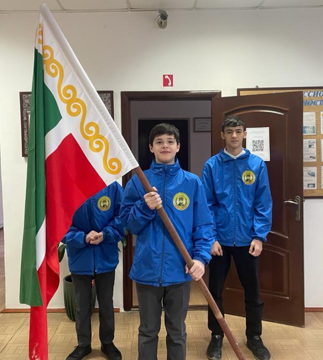 29 января в нашей школе прошла традиционная церемония поднятия флага РФ и ЧР исполнение гимна РФ и ЧР.