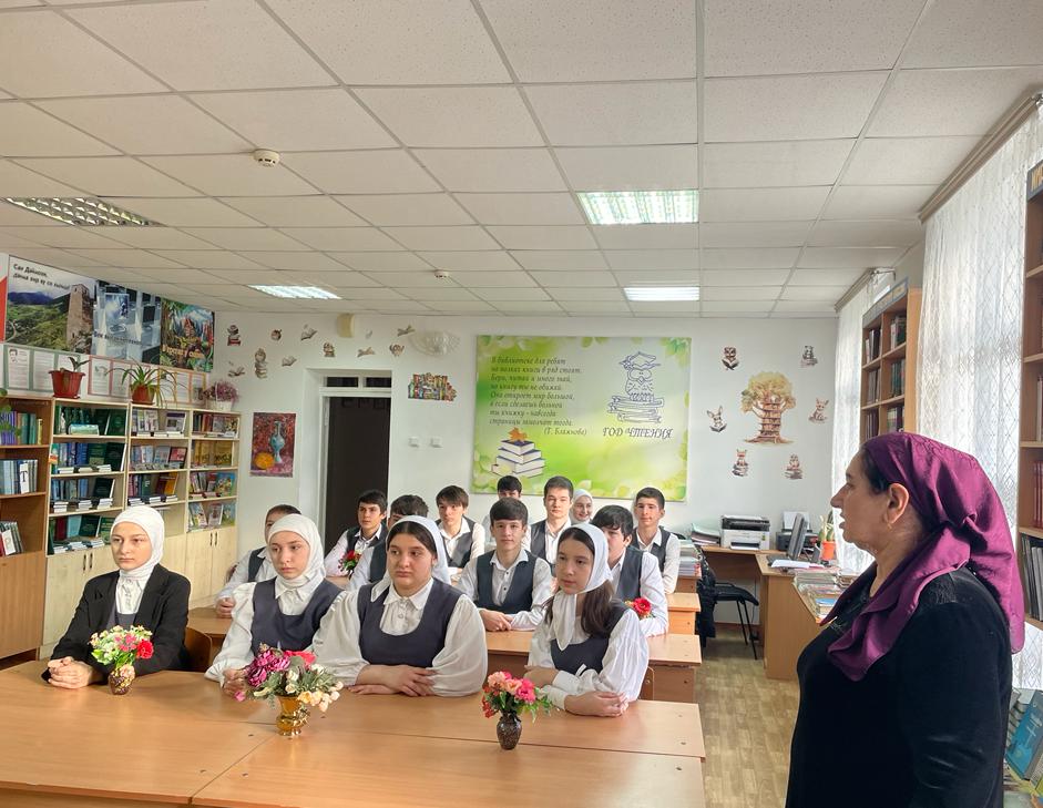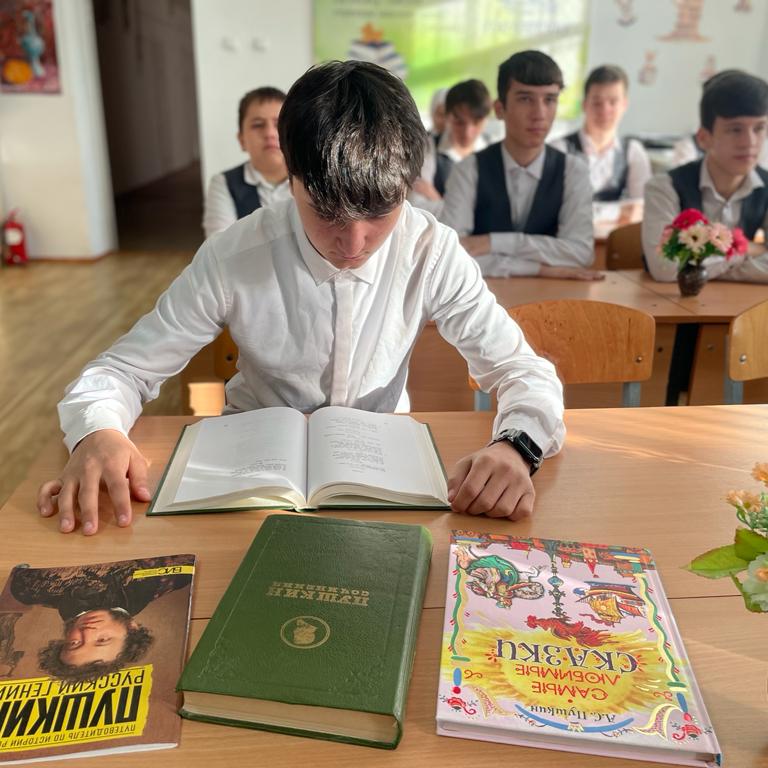 6 февраля 2024 года заведующая школьной библиотекой Джабаева М.А. совместно с директором Литературного музея М.Ю. Лермонтова Хамдиевой Р.Х. для обучающихся 9В класса провели литературный час «Мы любим Пушкина за то, что он Пушкин».