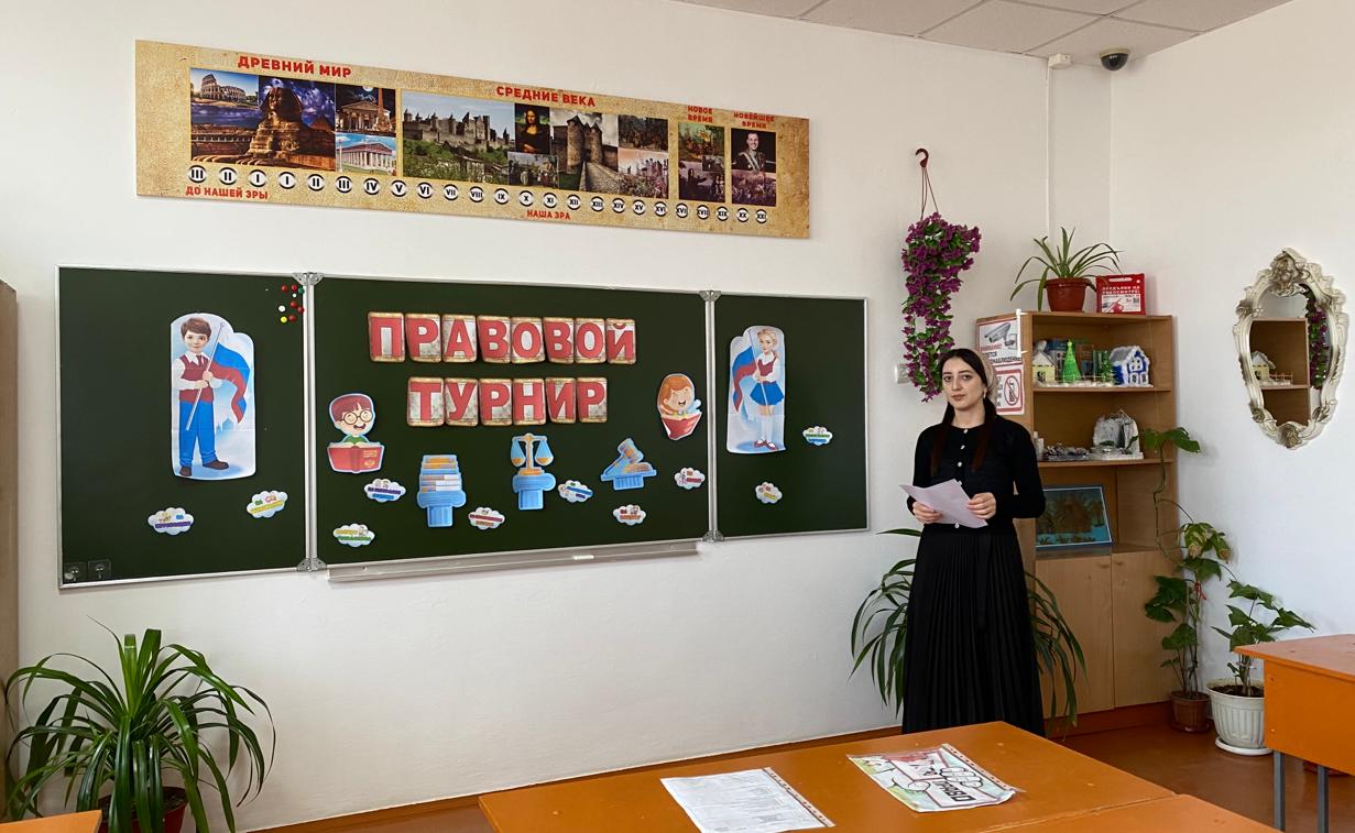 8 февраля 2024 года Тарлаева Х.М., учитель истории и обществознания провела внеклассное мероприятие Правовой турнир" в 7 "г" классе.