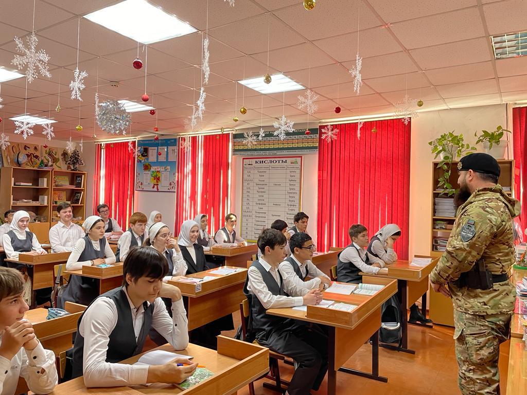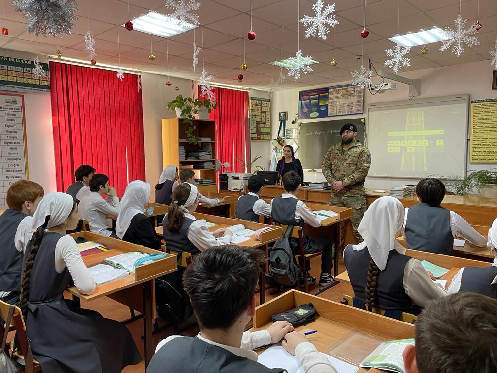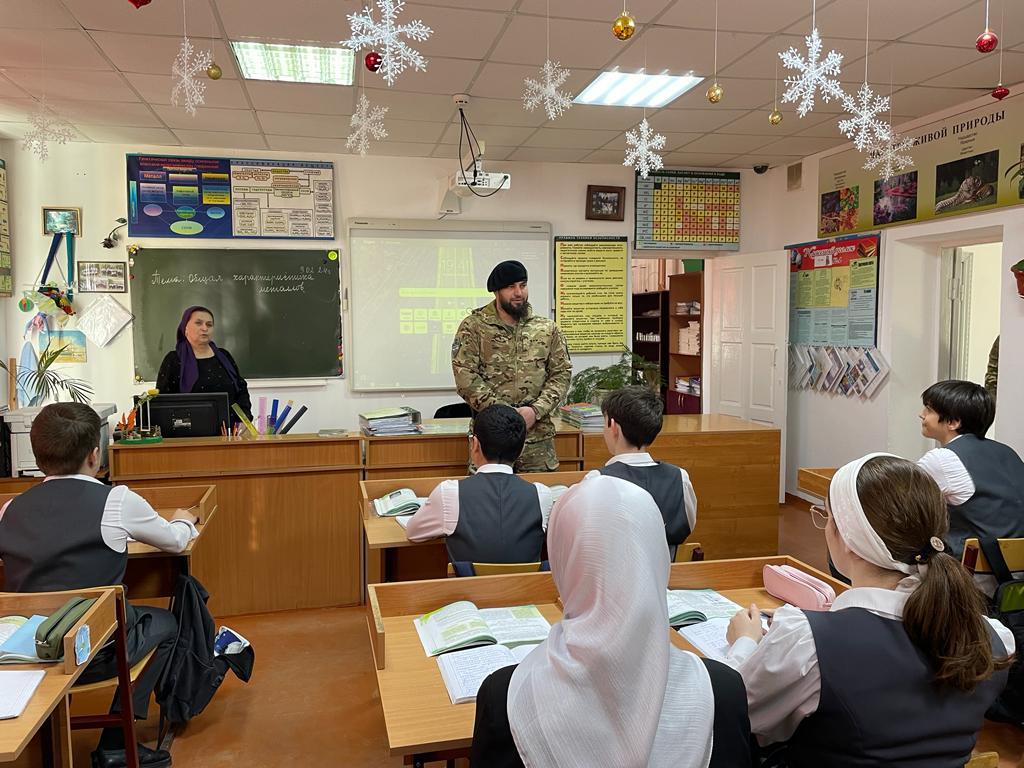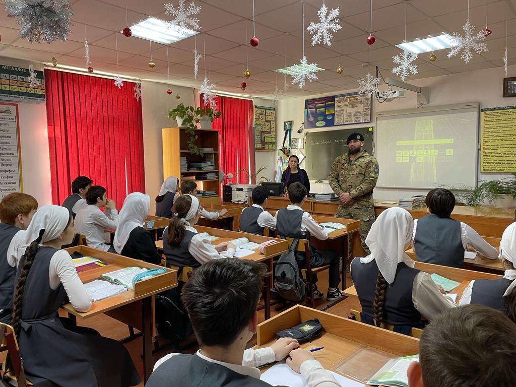 В МБОУ «Шелковская СОШ №3» прошел Урок Мужества с участием военнослужащего СВО