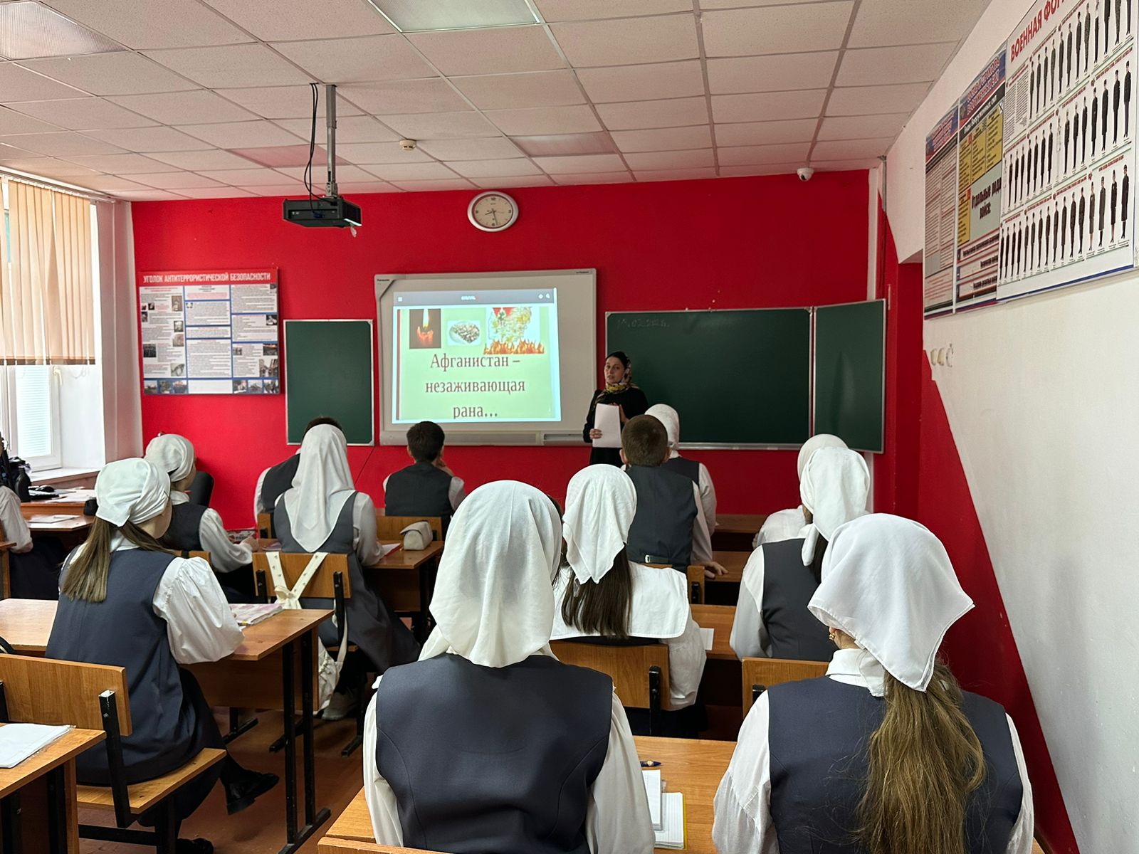 В ходе урока Рената Хасановна познакомила обучающихся с историческими событиями войны в Афганистане, рассказала о том, как мужественно и профессионально выполняли свой долг солдаты, как в сложнейших условиях проявляли стойкость и благородство, сохраняли верность военной присяге и долгу.