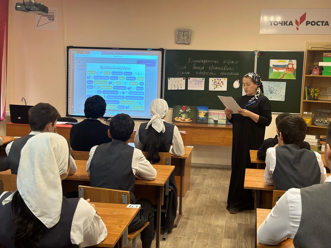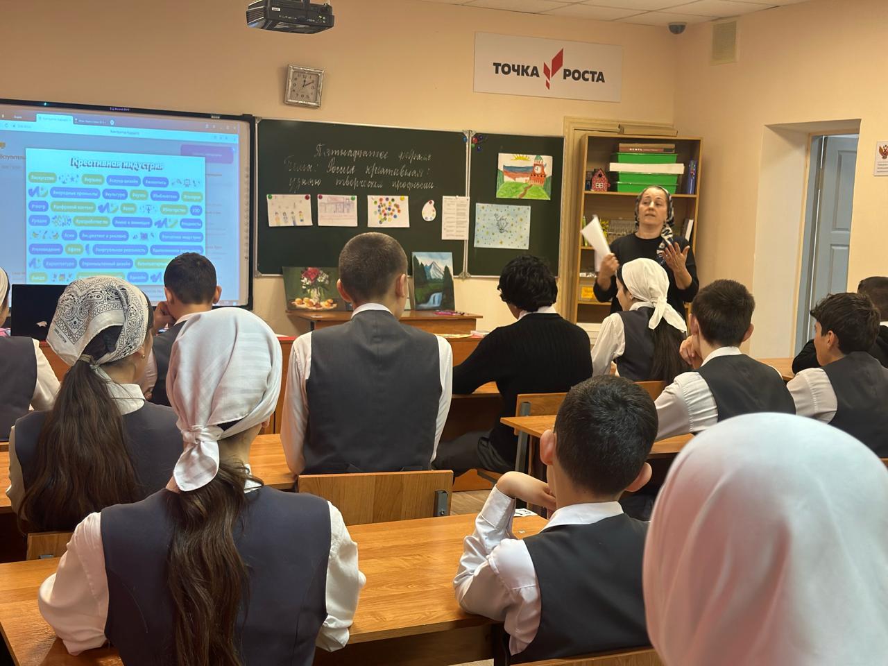 Сегодня, в рамках курса внеурочной деятельности «Россия- мои горизонты» Маркаева Р.Р. для обучающихся 8В класса провела профориентационное занятие «Россия креативная: узнаю творческие профессии".