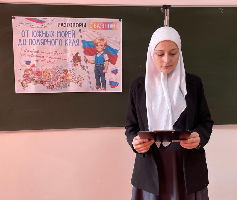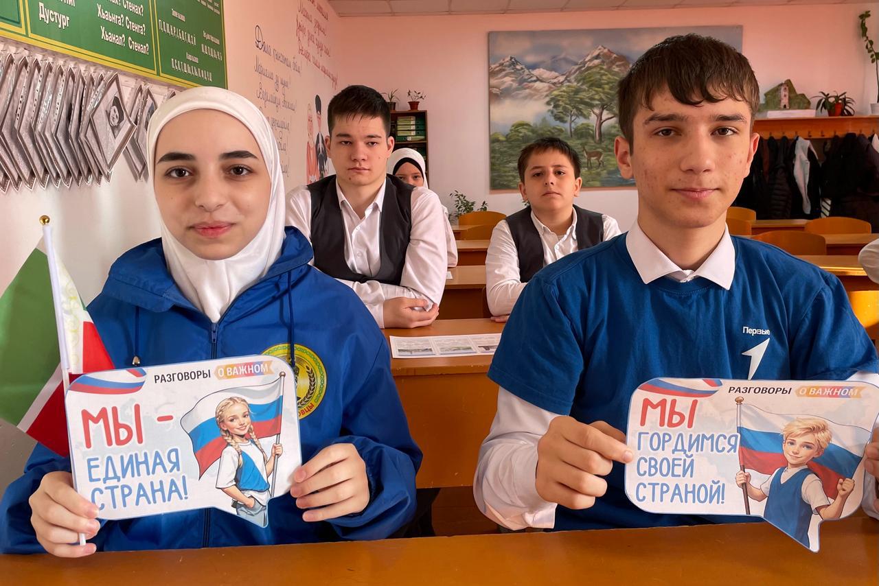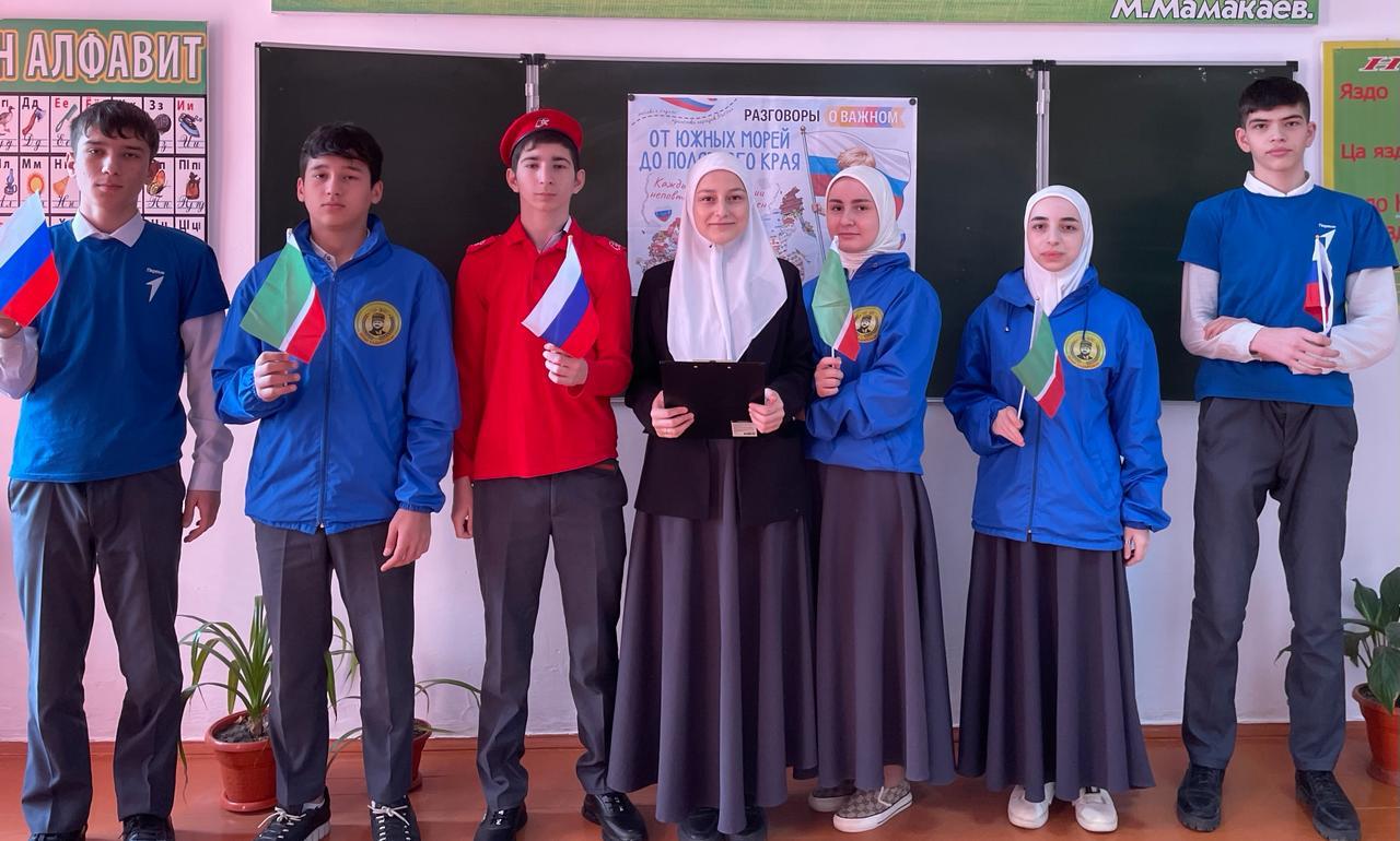 Сегодняшний урок - урок путешествие по нашей стране «От южных морей до полярного края» из цикла «Разговоры о важном», посвященный достопримечательностям, достижениям и перспективам развития каждого региона нашей великой Родины, провели активисты Юнармии совместно с «Юными Кадыровцами».