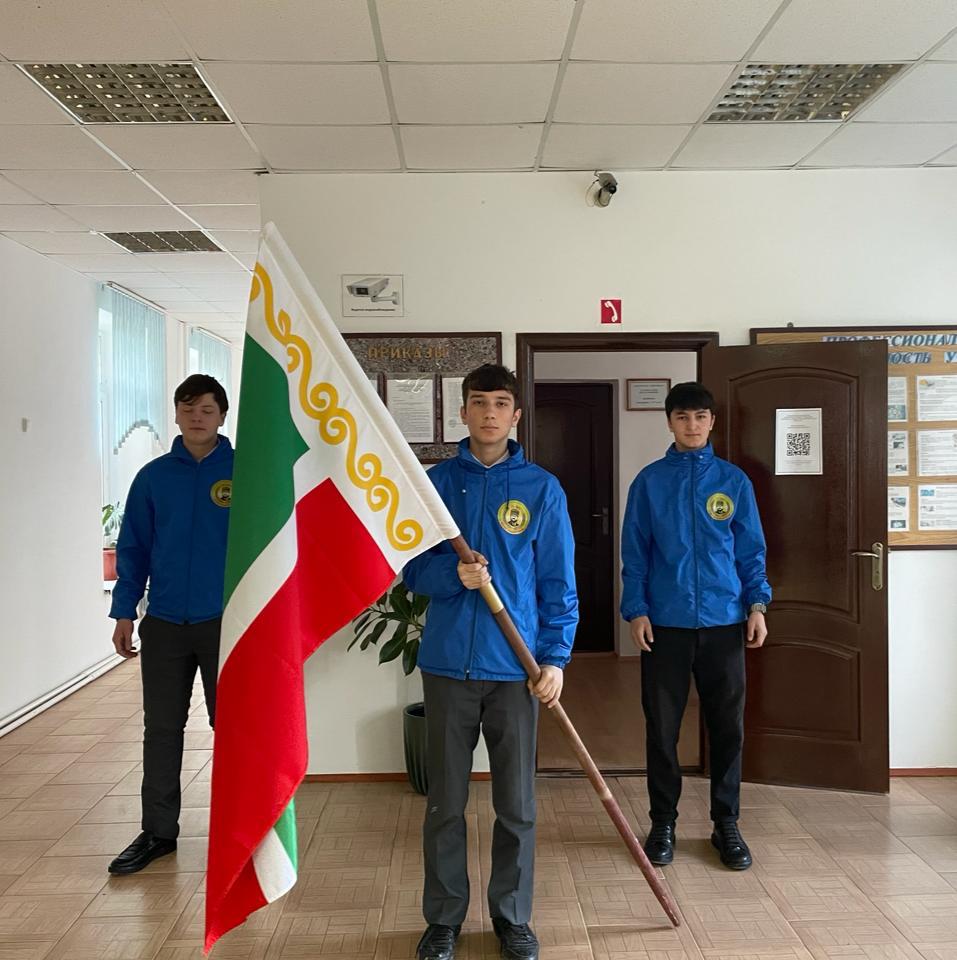 Утро понедельника в МБОУ "Шелковская СОШ №3" традиционно началось с выноса и установки Государственных флагов Российской Федерации и Чеченской Республики, а также исполнения Государственных гимнов Российской Федерации и Чеченской Республики, разговора о важном.