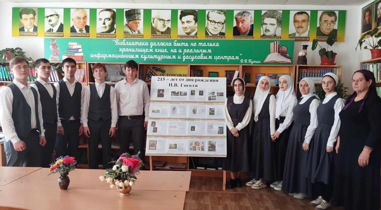 К 215-летию со дня рождения русского писателя Николая Васильевича Гоголя в библиотеке МБОУ «Шелковская СОШ №3» Джабаевой М.А., заведующей библиотекой составлена выставка-знакомство «О, Гоголь наш бессмертный Гоголь». На выставке представлены книги о жизни и творчестве замечательного русского писателя, а также самые известные его произведения.