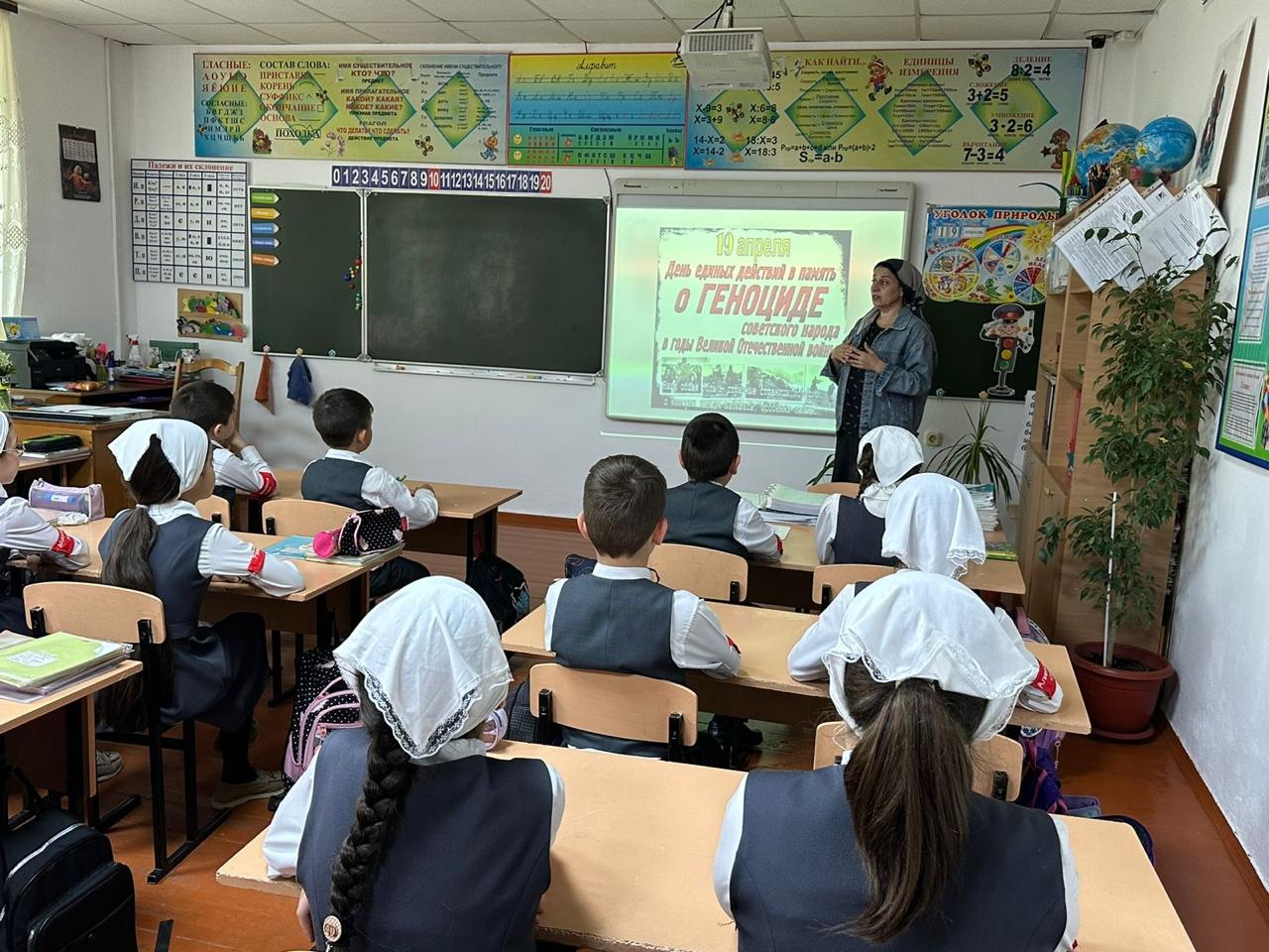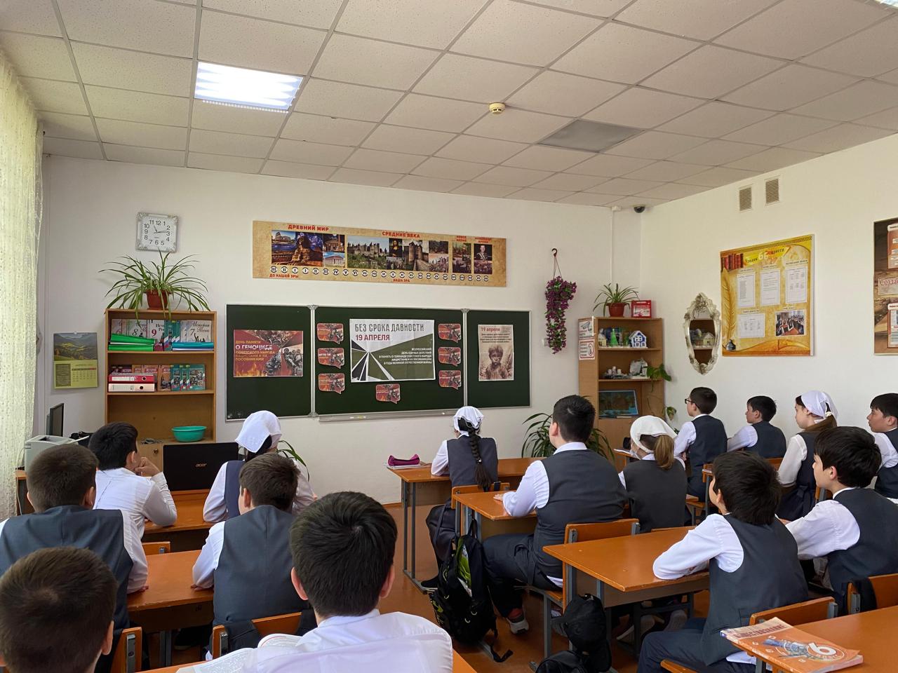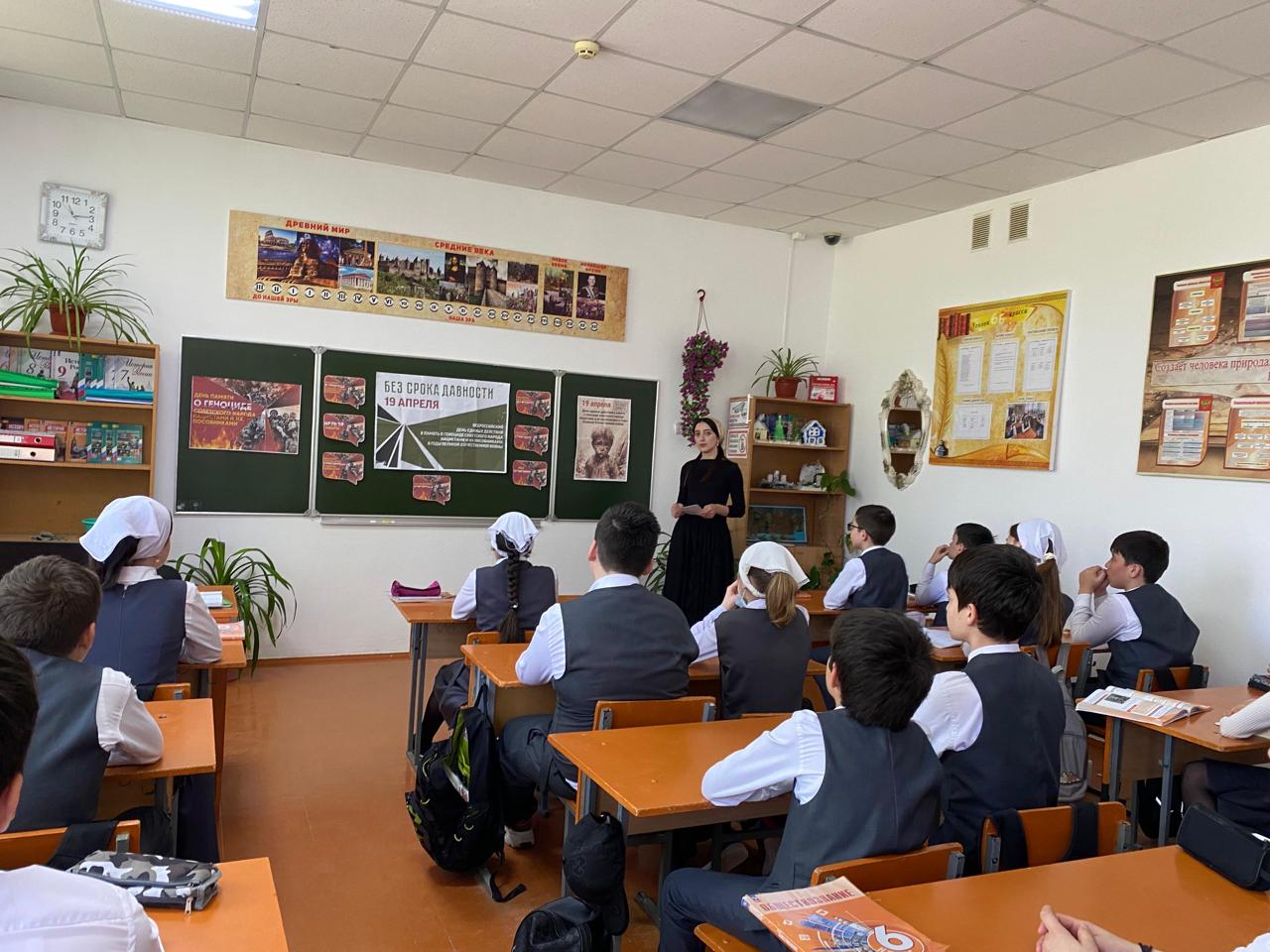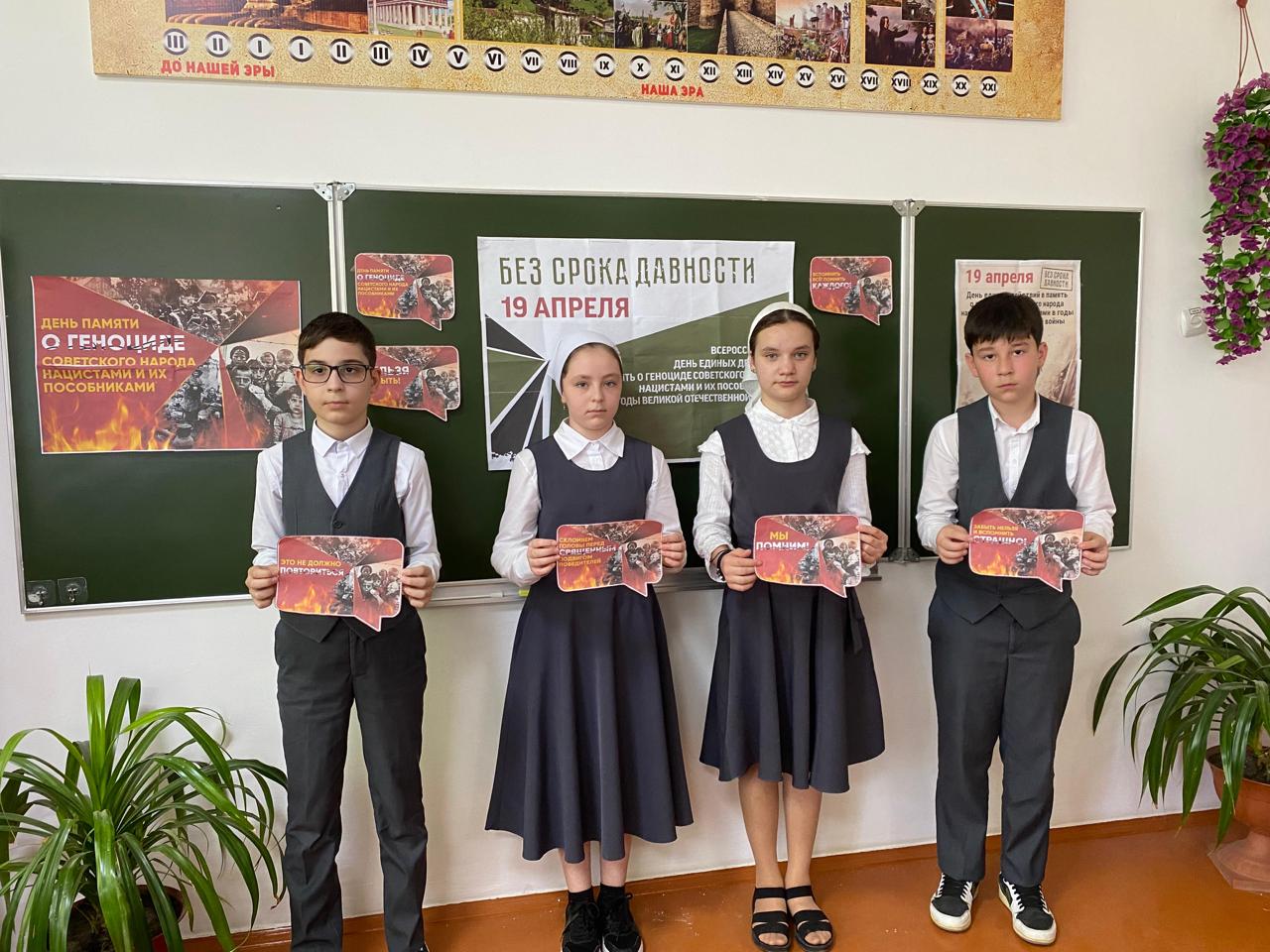 В МБОУ «Шелковская СОШ №3» прошёл Всероссийский урок "Без срока давности", который посвящен памятной дате 19 апреля - Дню единых действий в память о геноциде советского народа нацистами и их пособниками в годы Великой Отечественной войны.
