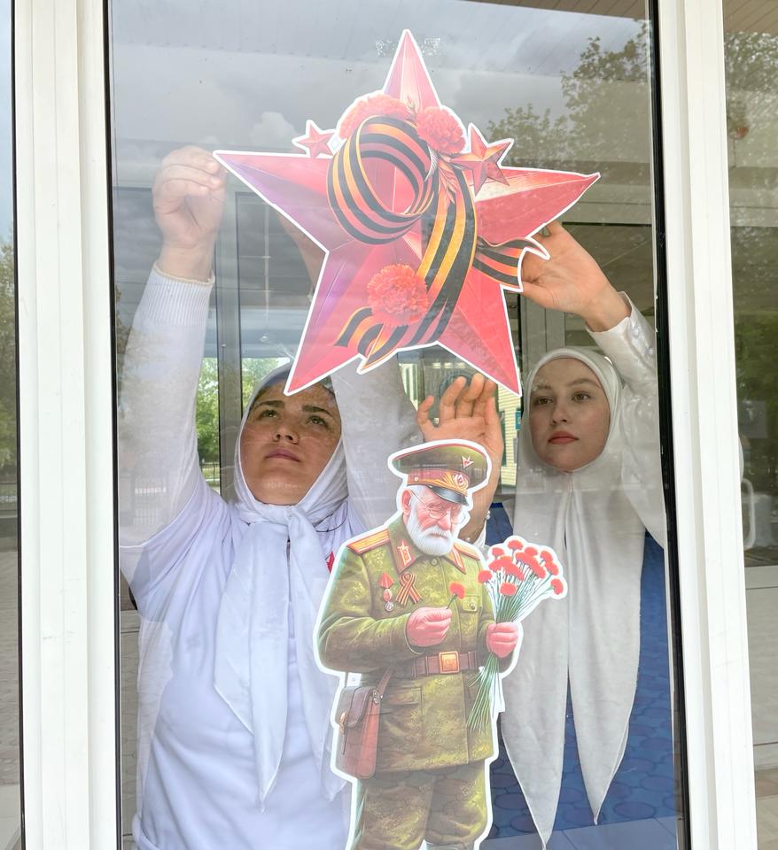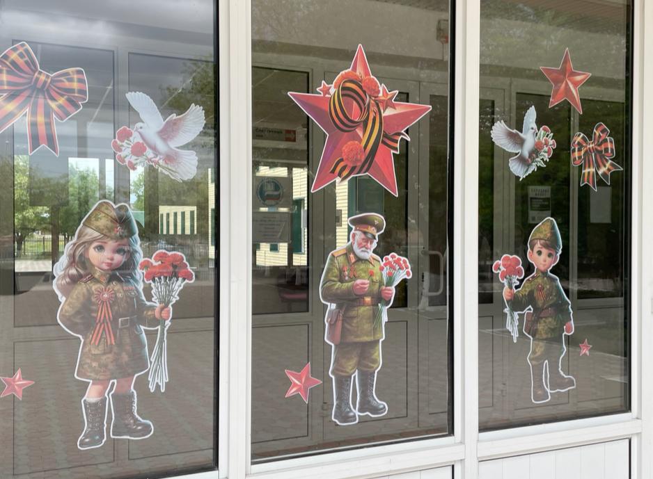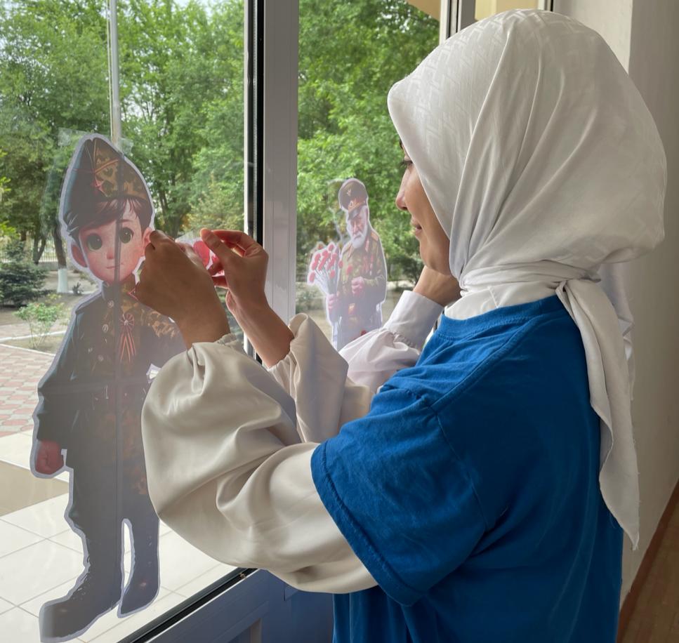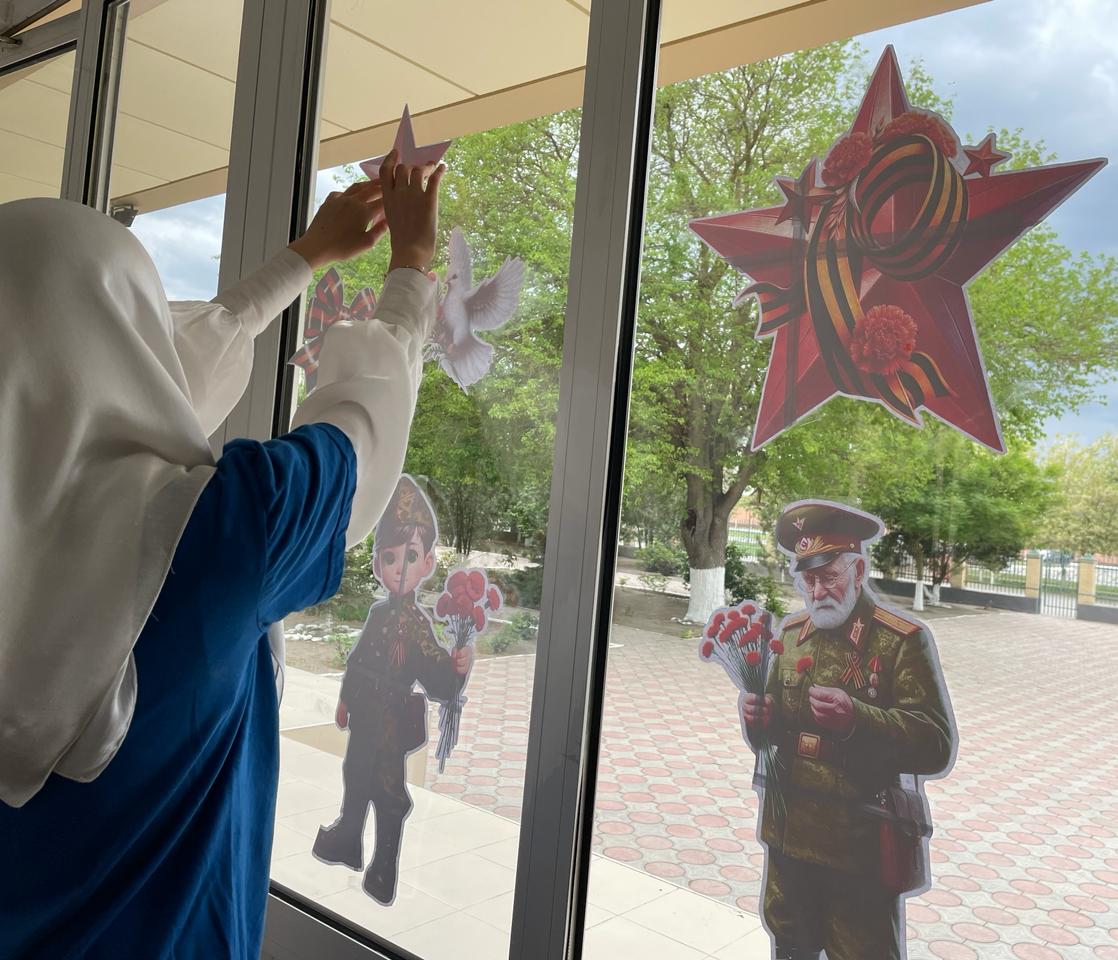 🎉Советник директора по воспитанию Гаибова А.А. вместе с Первыми присоединились к этой акции и начали оформлять окна школы с помощью рисунков, картинок, надписей, посвященных Победе советского народа над фашизмом в Великой Отечественной войне.