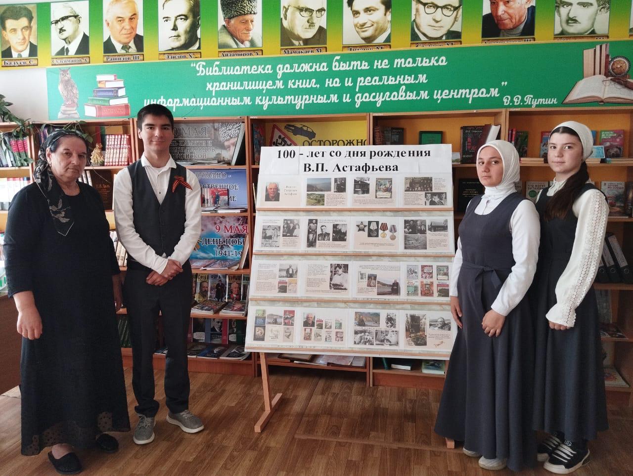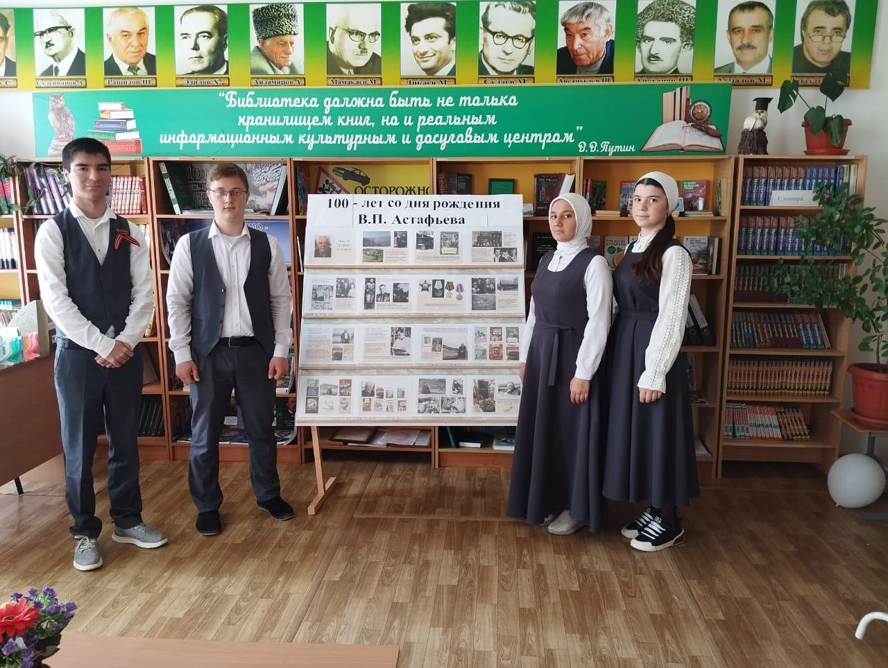 К этому дню Джабаева М.А., заведующая школьной библиотекой оформила книжную выставку, в ходе которой провела беседу. Библиотекарь рассказала ребятам о Викторе Петровиче Астафьеве — известном российском писателе, драматурге, сценаристе. Познакомила с непростой биографией писателя, который рано остался без матери, беспризорничал, воевал в годы Великой Отечественной войны, был ранен.