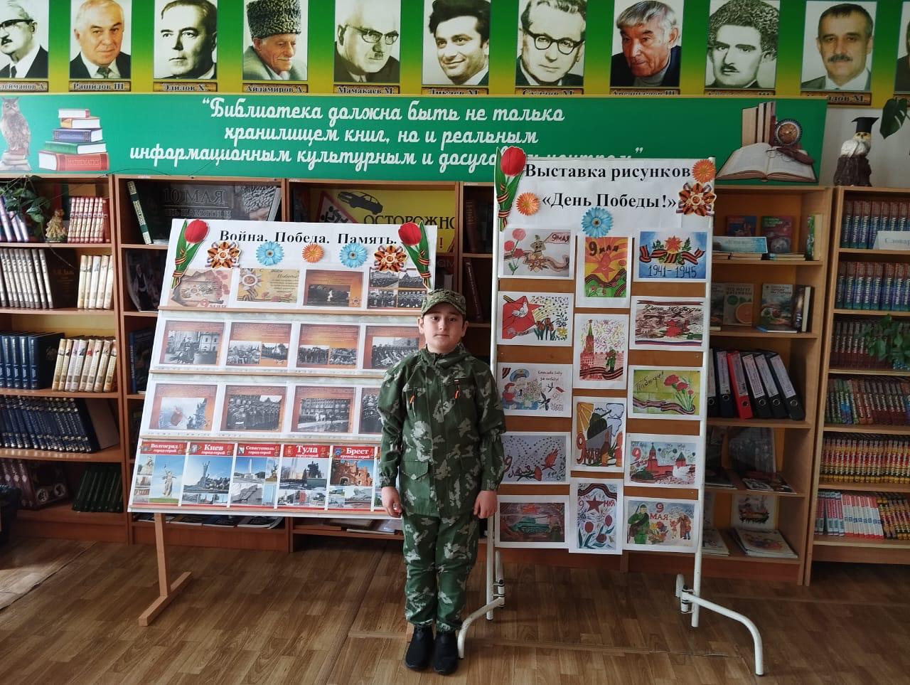 В преддверии 79-й годовщины Победы в Великой Отечественной войне 1941-1945 годов в библиотеке МБОУ «Шелковская СОШ №3» Джабаева М.А., заведующая библиотекой среди обучающихся 3-4 классов провела конкурс рисунков «День Победы», где детям была дана возможность показать, что именно они знают о войне. Где изображены яркие флаги и георгиевские ленты, ордена и медали, гвоздики и букеты, салют победы, символизирующие мир, создают праздничное настроение и вызывают радость и грусть, вселяют уверенность цены победы, в которой участвовали их прадеды.