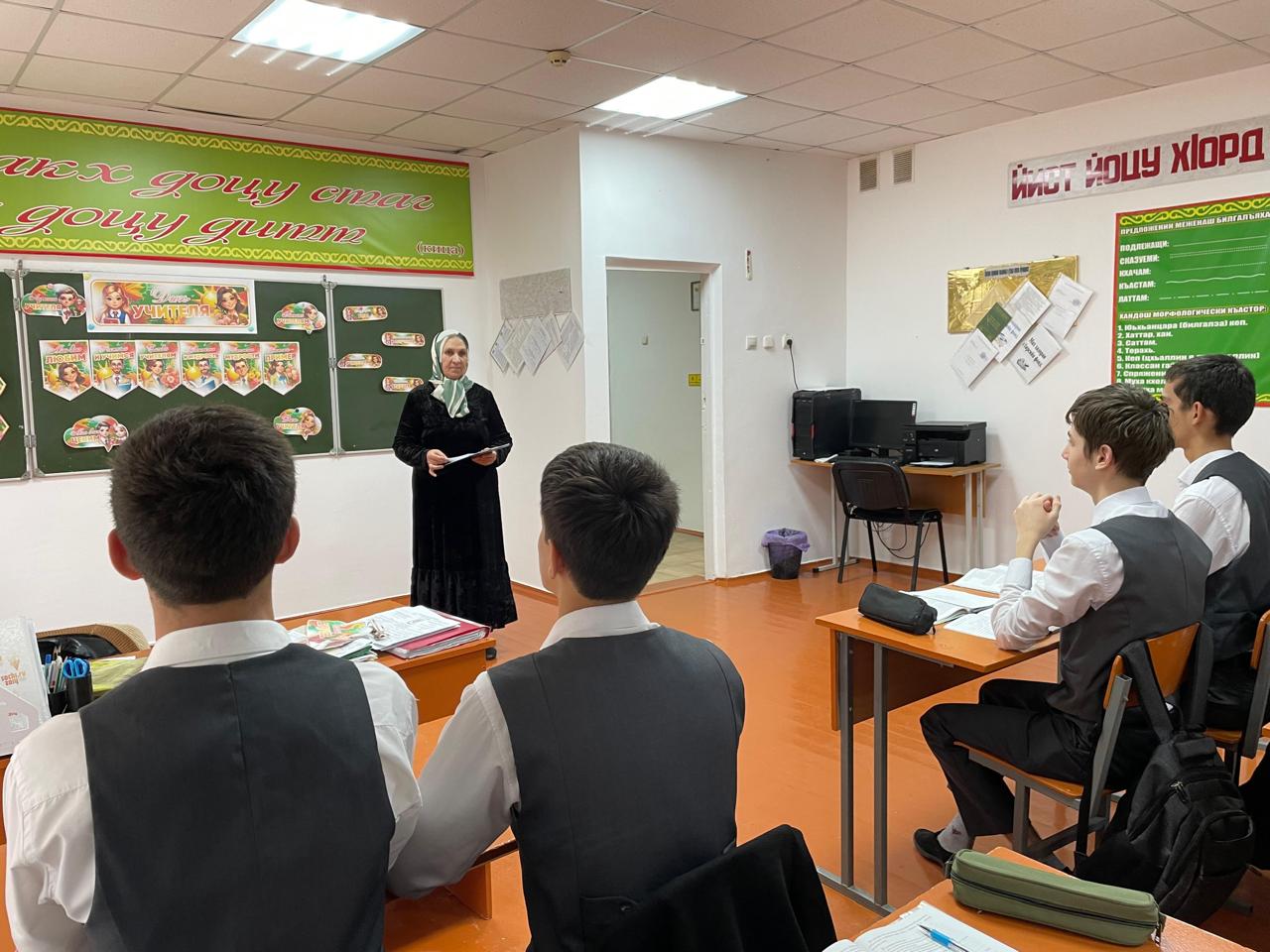 2 октября 2024 года Асабаева Л.И. для обучающихся 10Б класса провела классный час «Нет выше звания-Учитель». В ходе урока Ляйла Исаевна с ребятами говорила о том, насколько важен труд учителя, о его вкладе в будущее и личностное развитие.