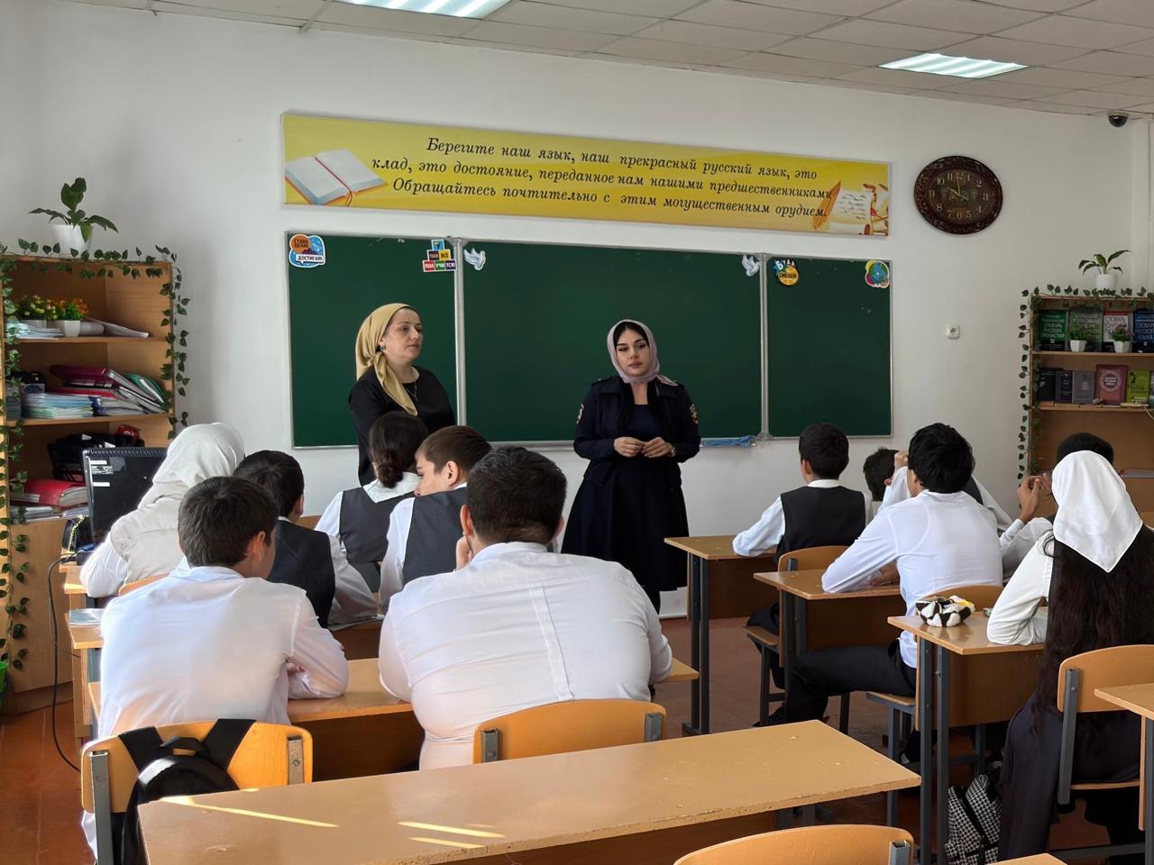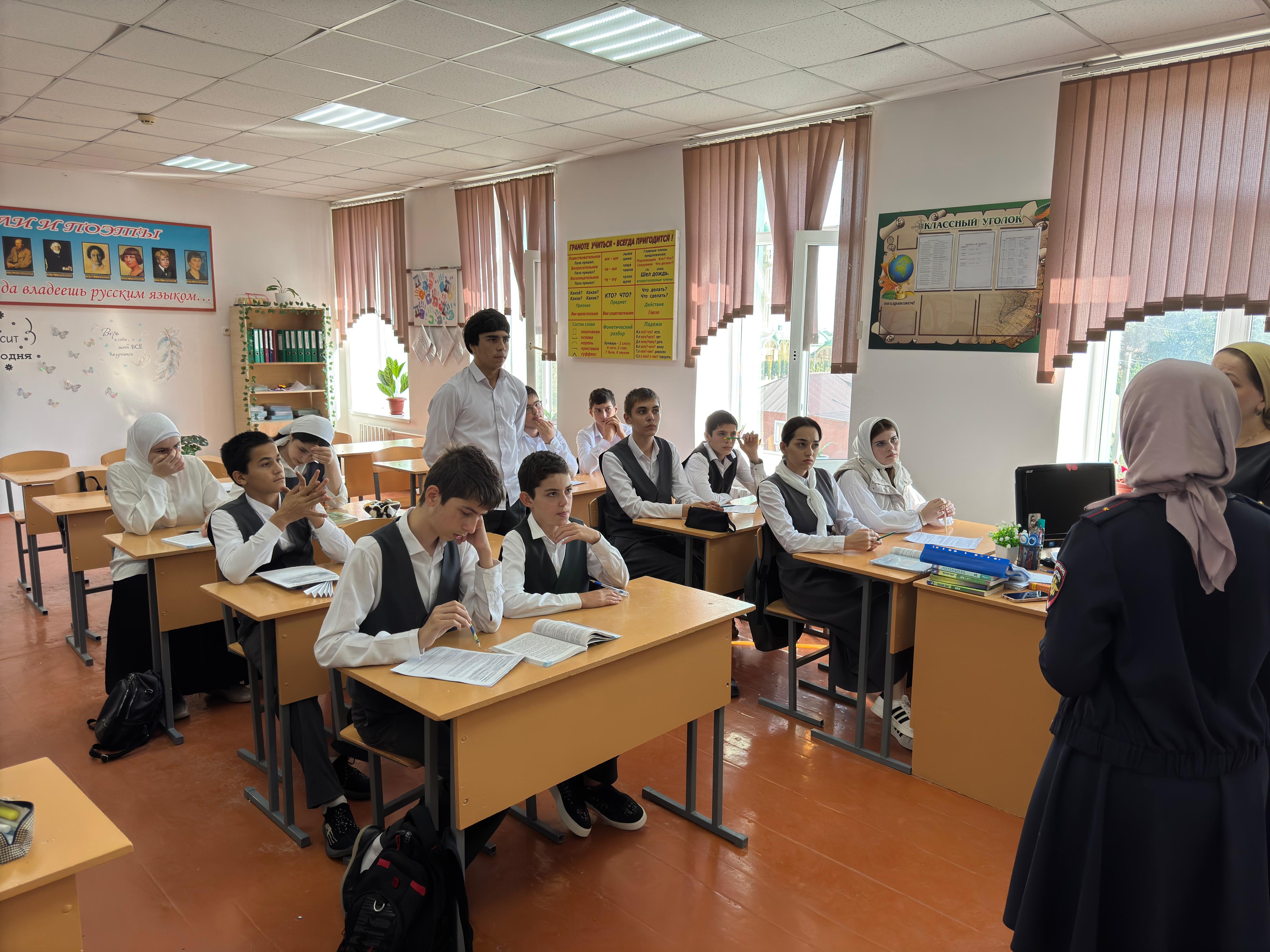 С целью профилактики правонарушений и преступлений среди несовершеннолетних, 8 октября 2024 года инспектор ПДН Улубаева Индира Зуратовна провела профилактические беседы с обучающимися 7, 8, 9 классов нашей школы.