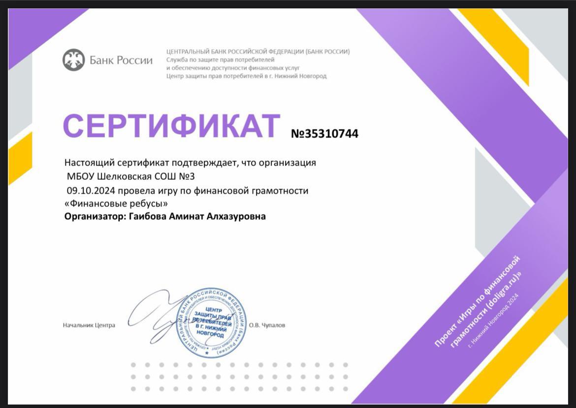 9 октября 2024 года советник директора по воспитанию Гаибова Аминат Алхазуровна с обучающимся 5А класса провела игру "Финансовые ребусы".