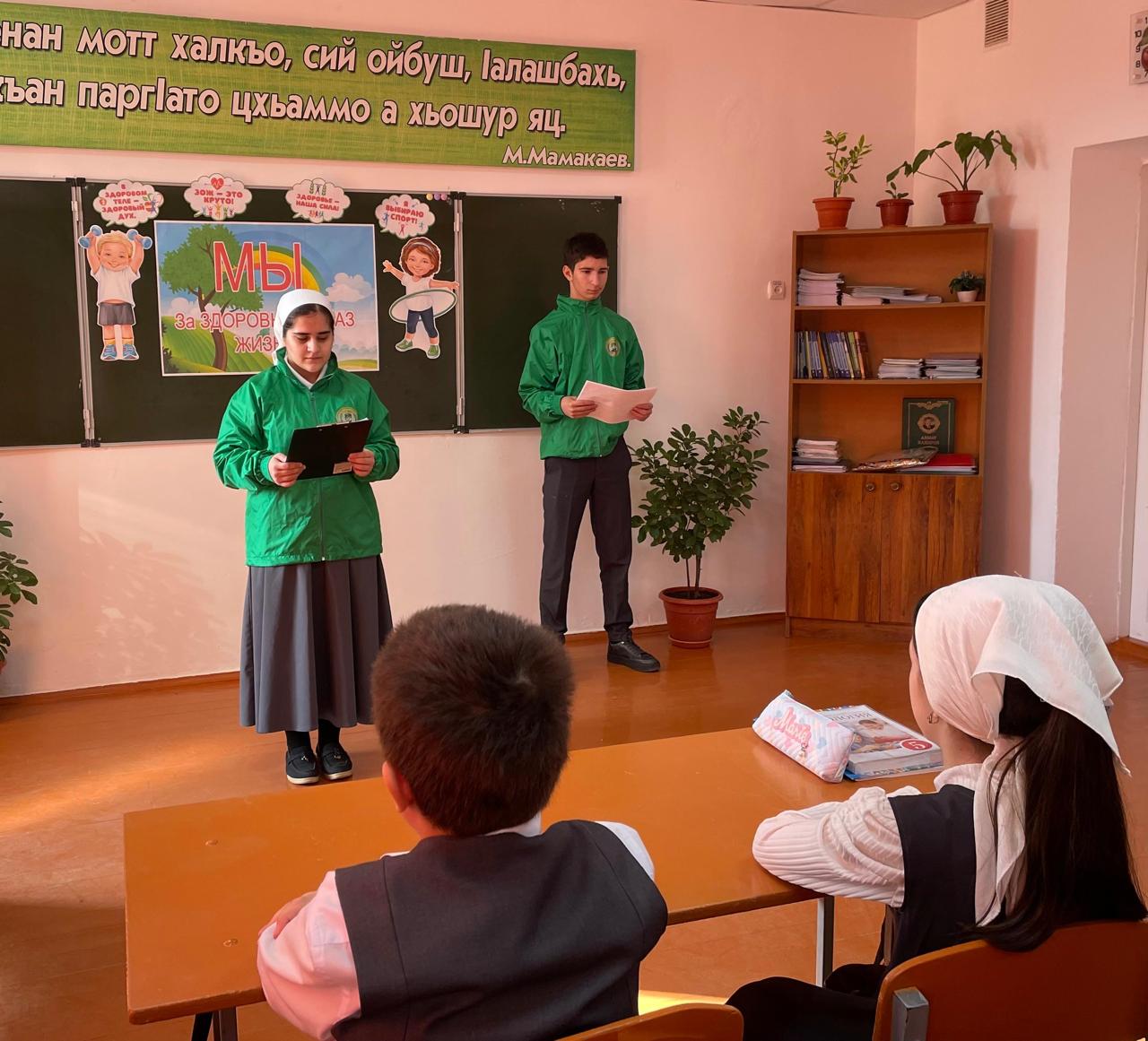 Юные Кадыровцы провели с ребятами беседу по аспектам здорового образа жизни и рассказали о популярных видах спорта, дали советы по здоровому образу жизни. В завершении урока ребята сделали для себя полезные выводы, что здоровый образ жизни делает человека свободным и независимым.