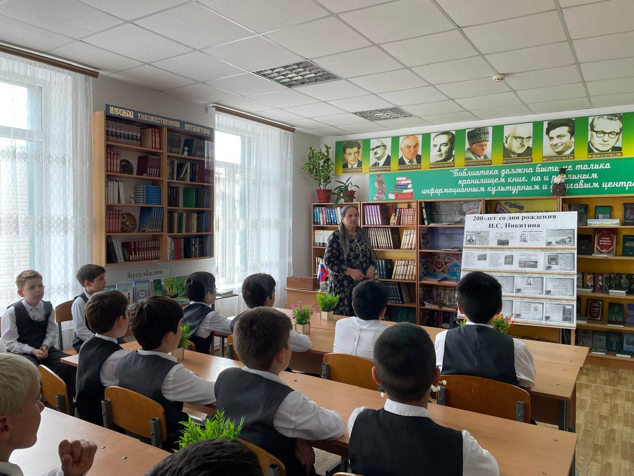 В школьной библиотеке МБОУ «Шелковская СОШ №3» в честь этого события Джабаева М.А., зав.библиотекой оформила выставку - портрет «Поэтический мир Ивана Саввича Никитина», на которой представлены книги, посвященные жизни и творчеству поэта.