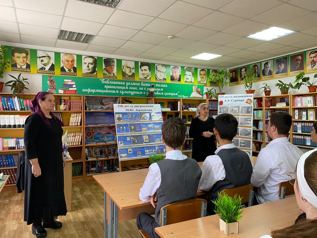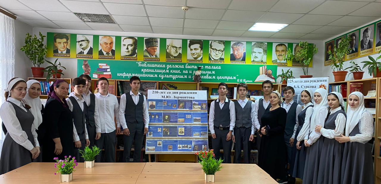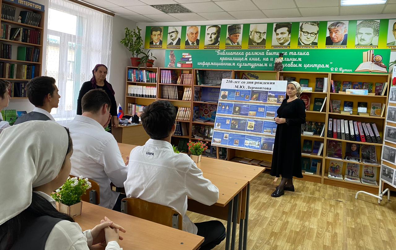 К юбилею великого русского поэта и прозаика Михаила Юрьевича Лермонтова в школьной библиотеке Джабаева М.А. оформила книжную выставку-приглашение «Мятежный гений вдохновенья».