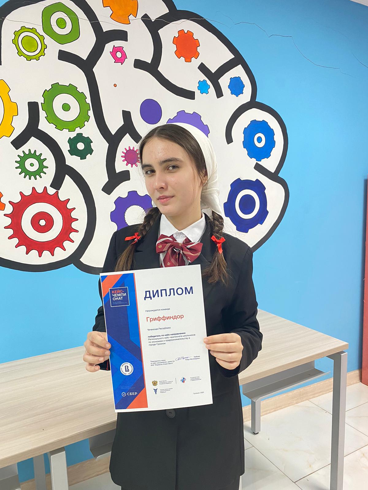 7 ноября 2024 года обучающаяся 11А класса МБОУ «Шелковская СОШ №3» Анасова Фатима приняла участие в Региональном кейс-чемпионате школьников по экономике и предпринимательству в городе Грозном в составе команды «Гриффиндор».