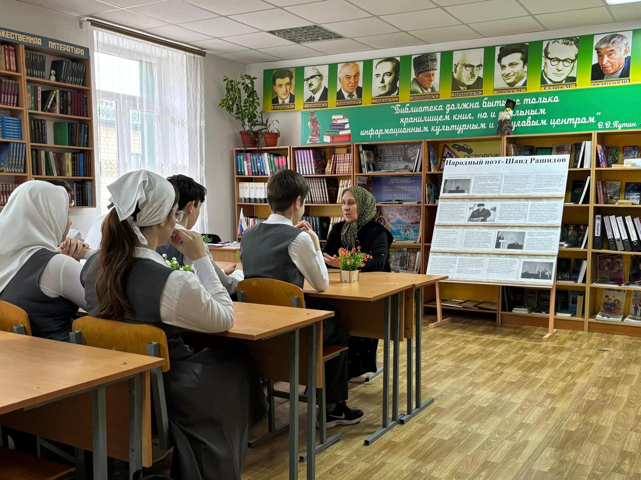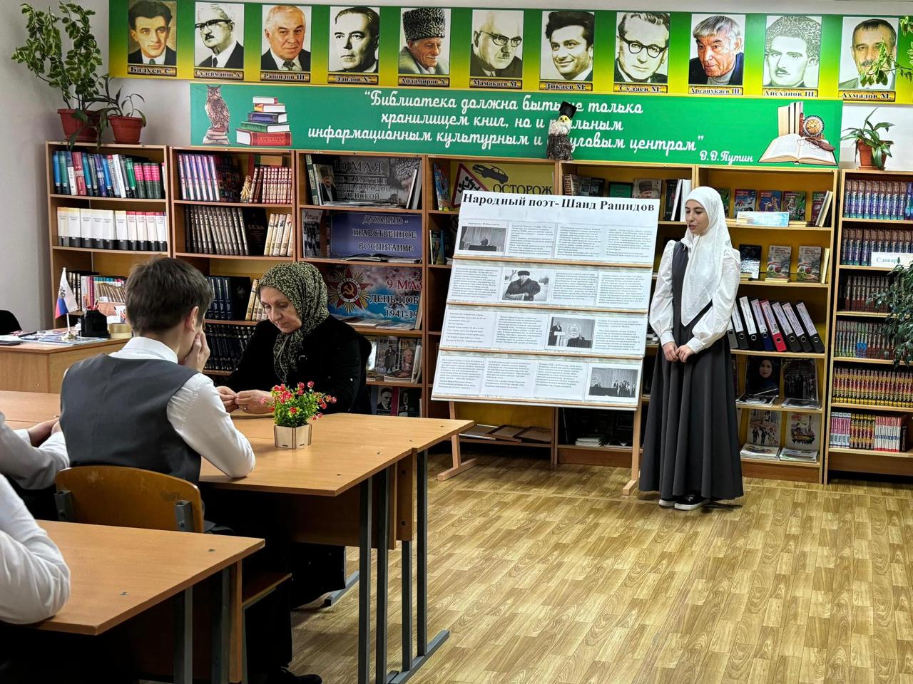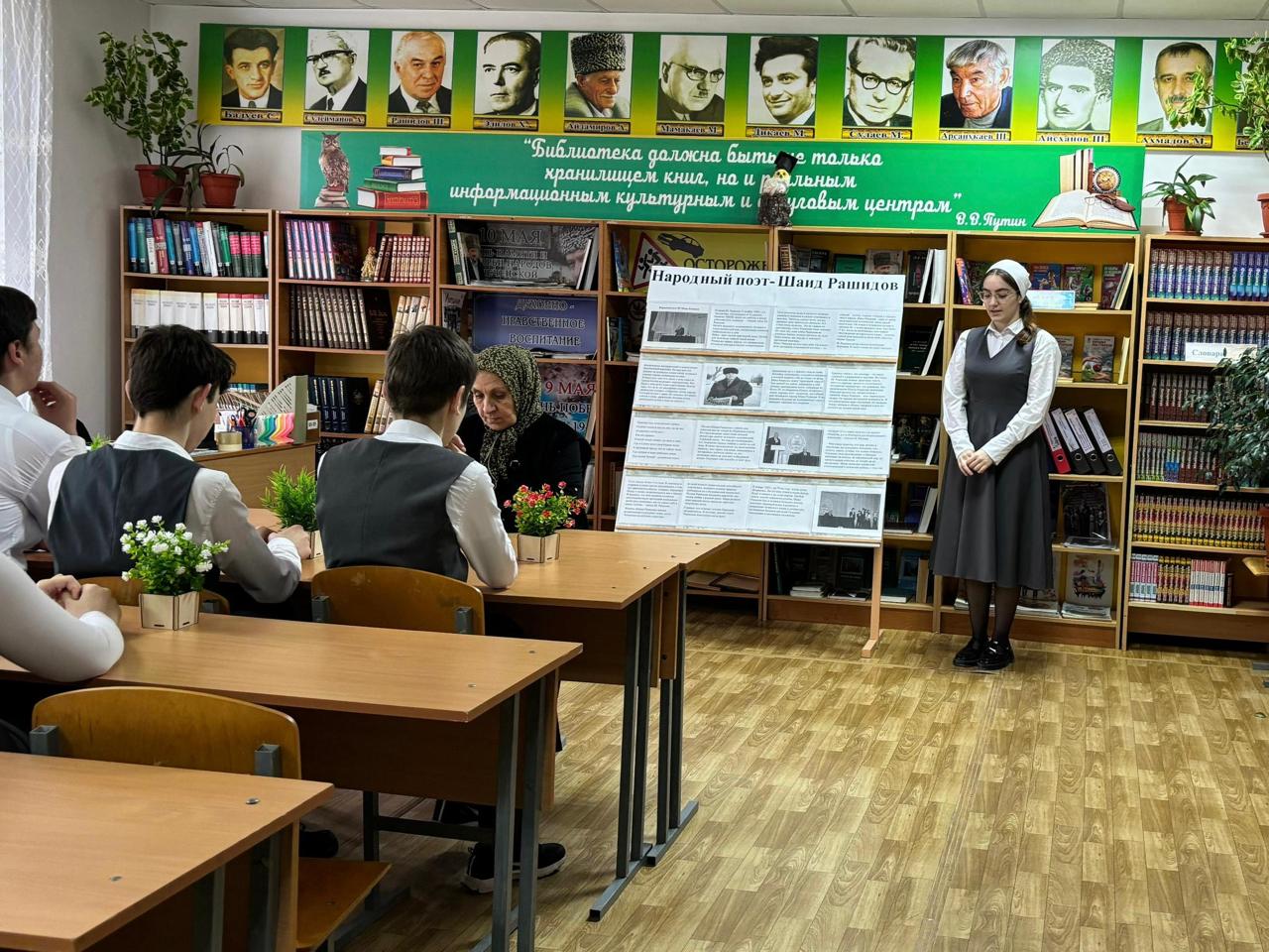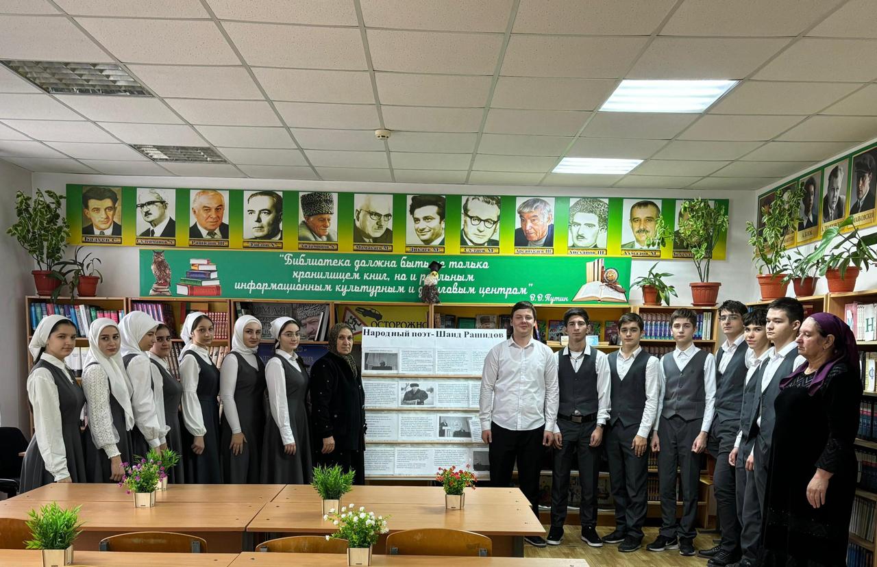 20 ноября 2024 года к 84-летию со дня рождения чеченского поэта, народного писателя Чеченской Республики Шаида Рашидова Асабаева Л.И., учитель чеченского языка и литературы в школьной библиотеке для обучающихся 10Б класса провела литературный час «Народный поэт- Шаид Рашидов». Лейла Исаевна познакомила ребят с жизнью и творчеством писателя.