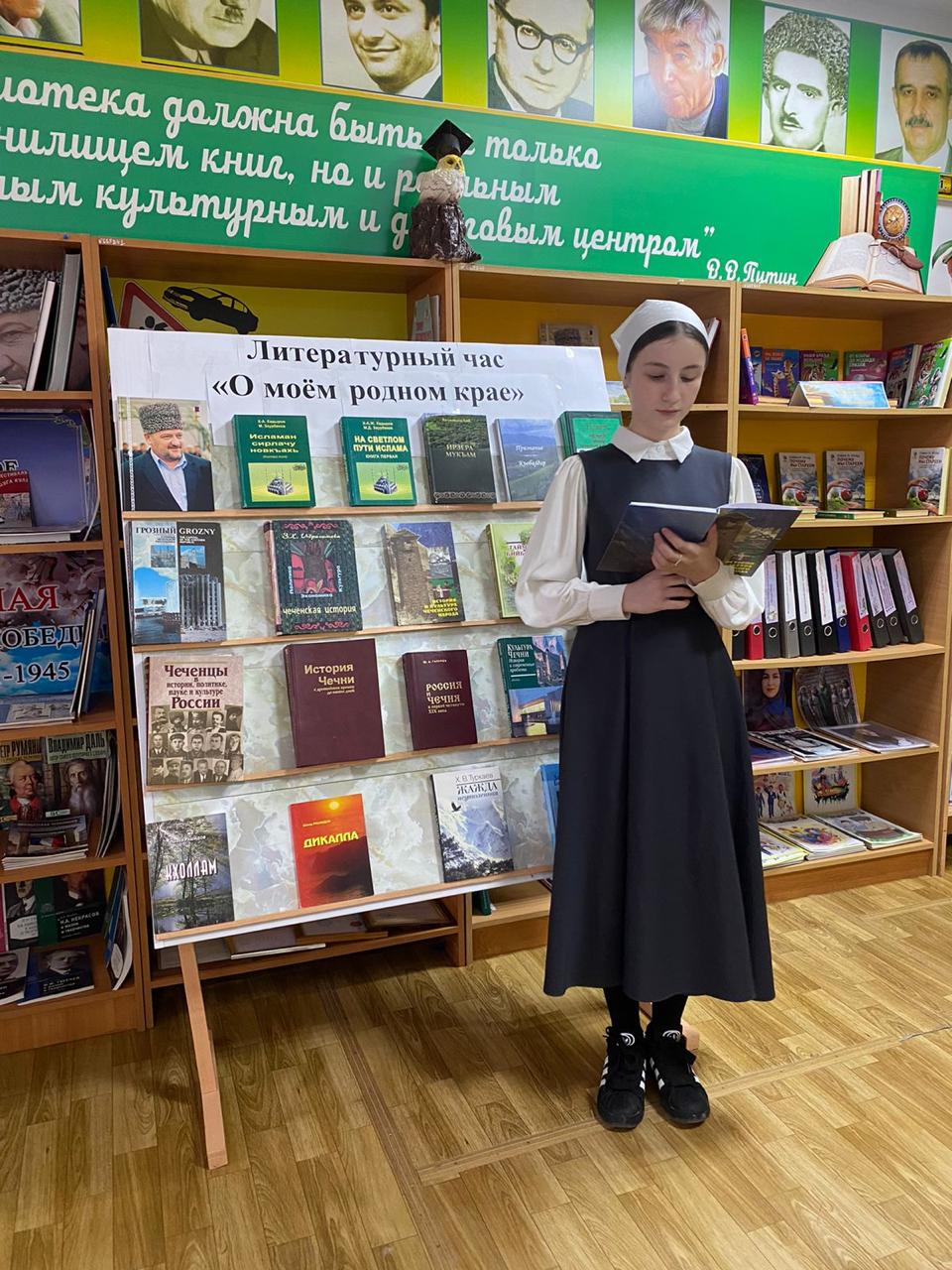 9 декабря 2024 года в школьной библиотеке для обучающихся 6-7 классов организован и проведен литературный час, посвященный Году истории, исторических памятников, архитектуры и культурного наследия чеченского Чеченского народа.