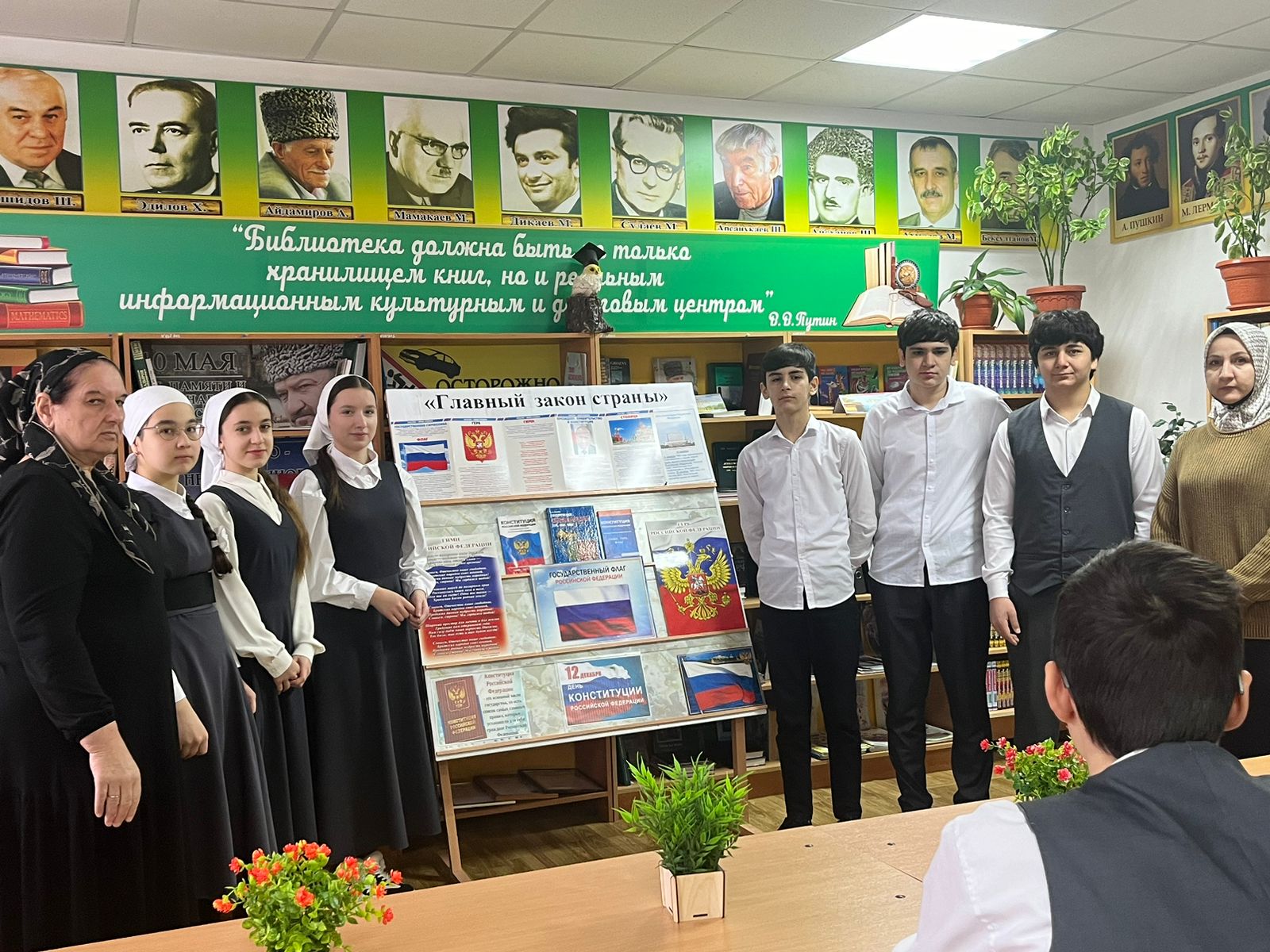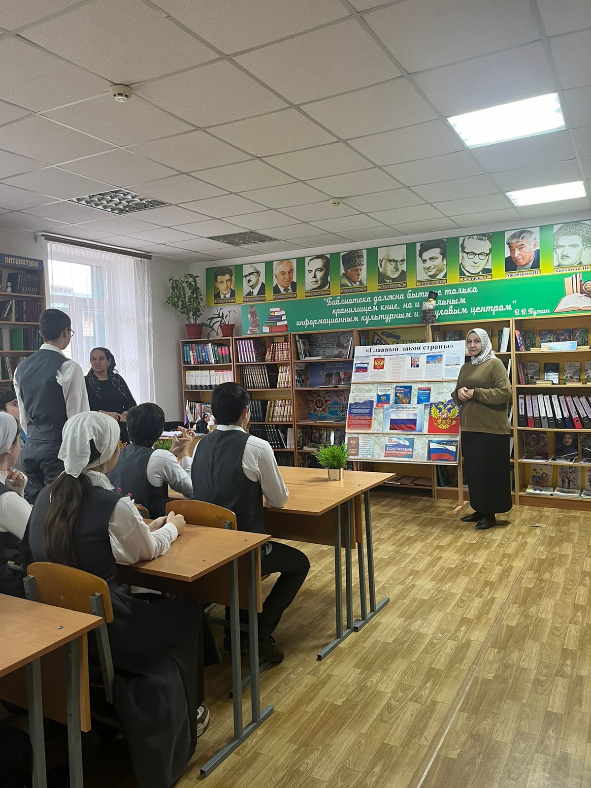 10 декабря в школьной библиотеке оформлена книжная выставка "Главный закон страны". Джабаева М.А., библиотекарь провела обзор литературы, представленной на выставке для учащихся школы. Рассказала об истории Конституции начиная с 1918 года и до внесения поправок в 2020 году. Вспомнили о значении и роли Конституции в обществе, в чем заключается ее суть и главная цель.
