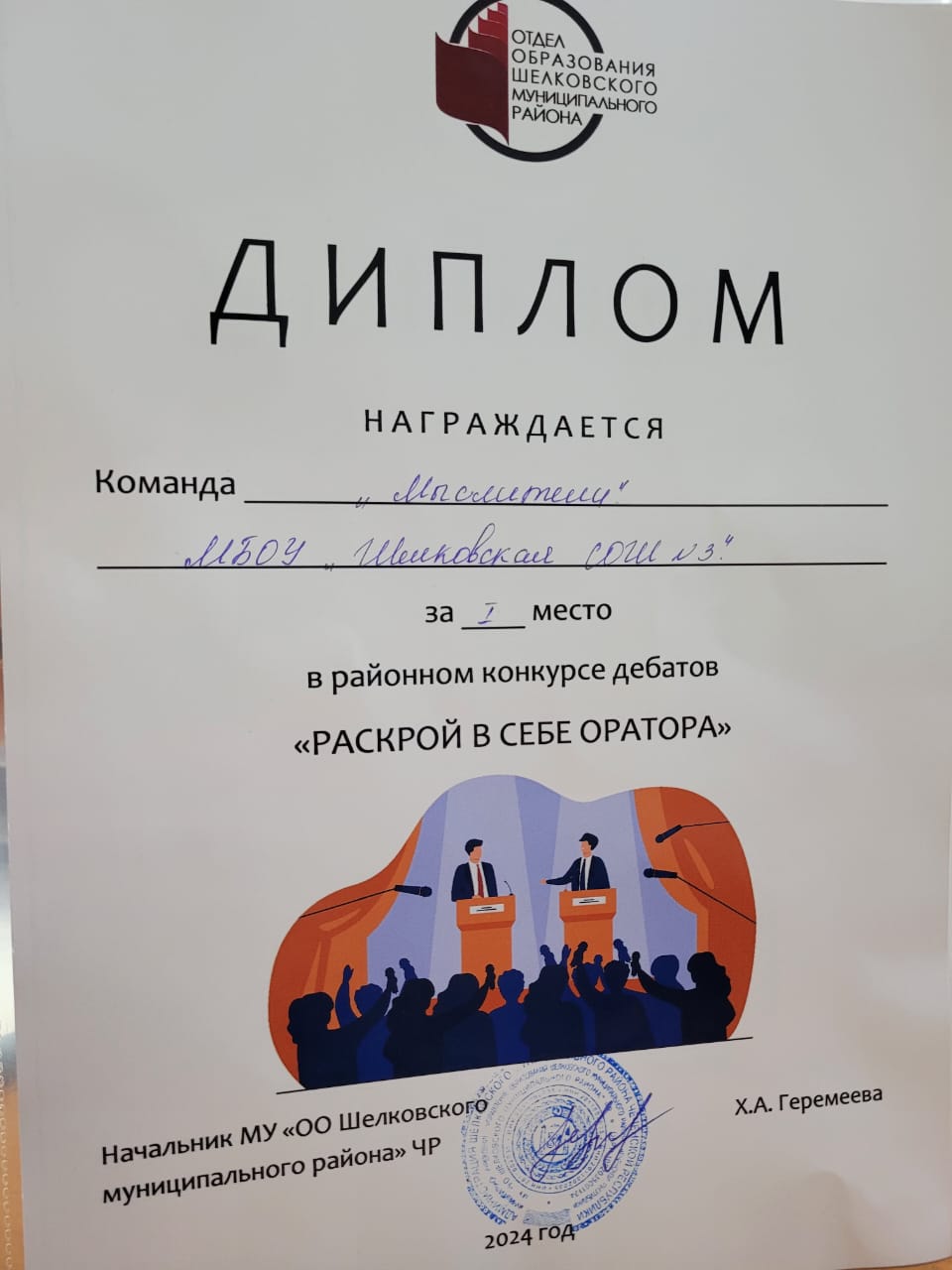 10 декабря 2024 года Шелковской центр технического творчества провел районный турнир по дебатам «Раскрой в себе оратора», который прошел на базе МБОУ «Гребенская СОШ №1». В турнире прошло участие 12 команд из образовательных учреждений Шелковского района. Турнир состоял из четырех этапов.