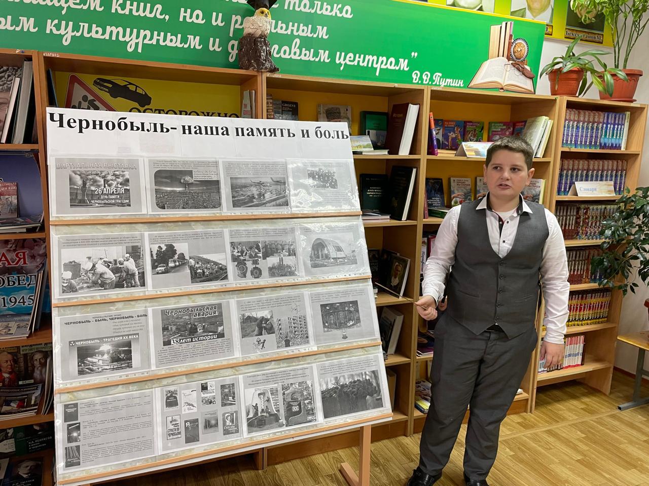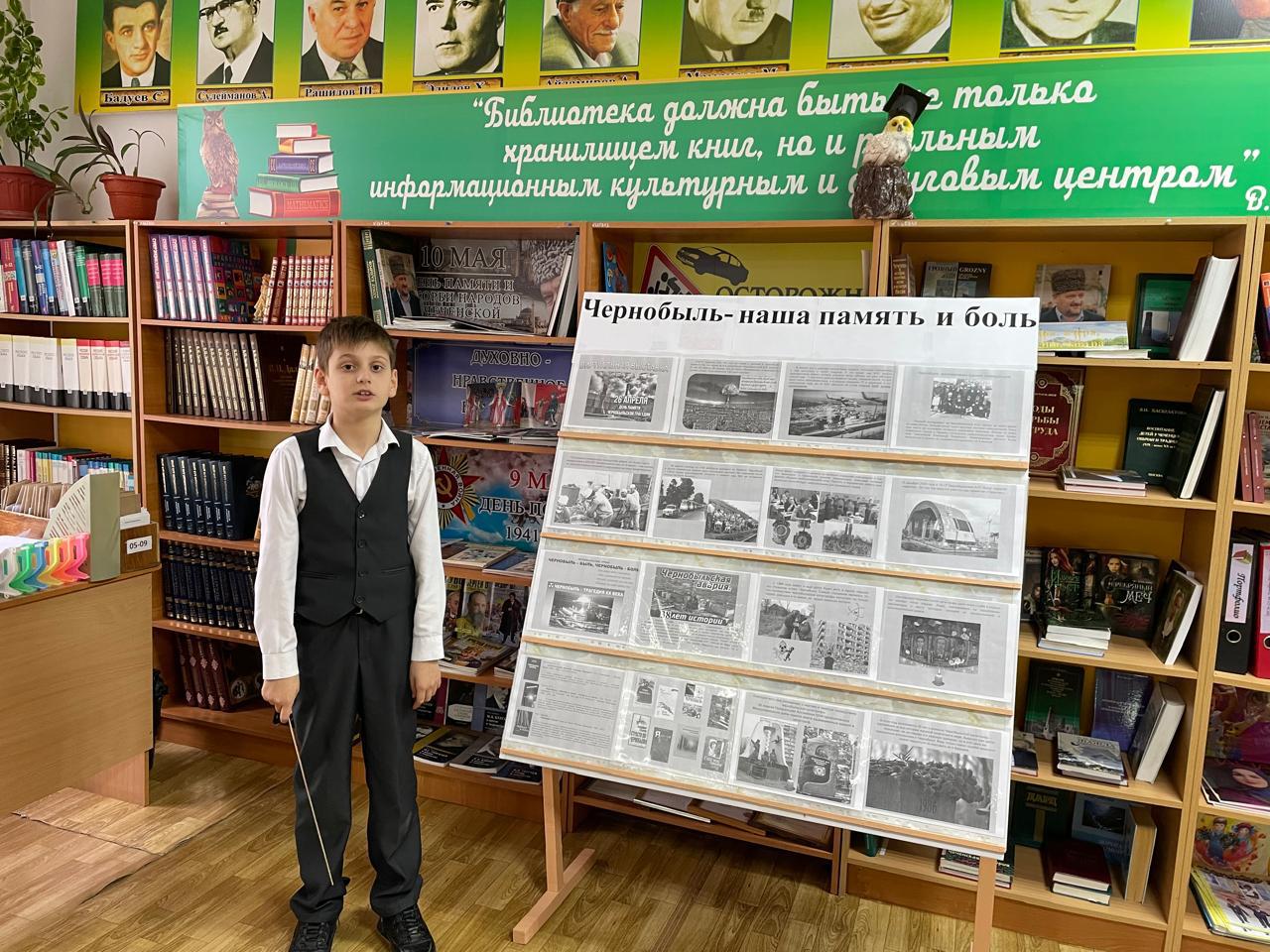 13 декабря в школьной библиотеке МБОУ «Шелковская СОШ №3» Джабаева М.А. подготовила книжно - иллюстративную выставку «Чернобыль - наша память и боль».