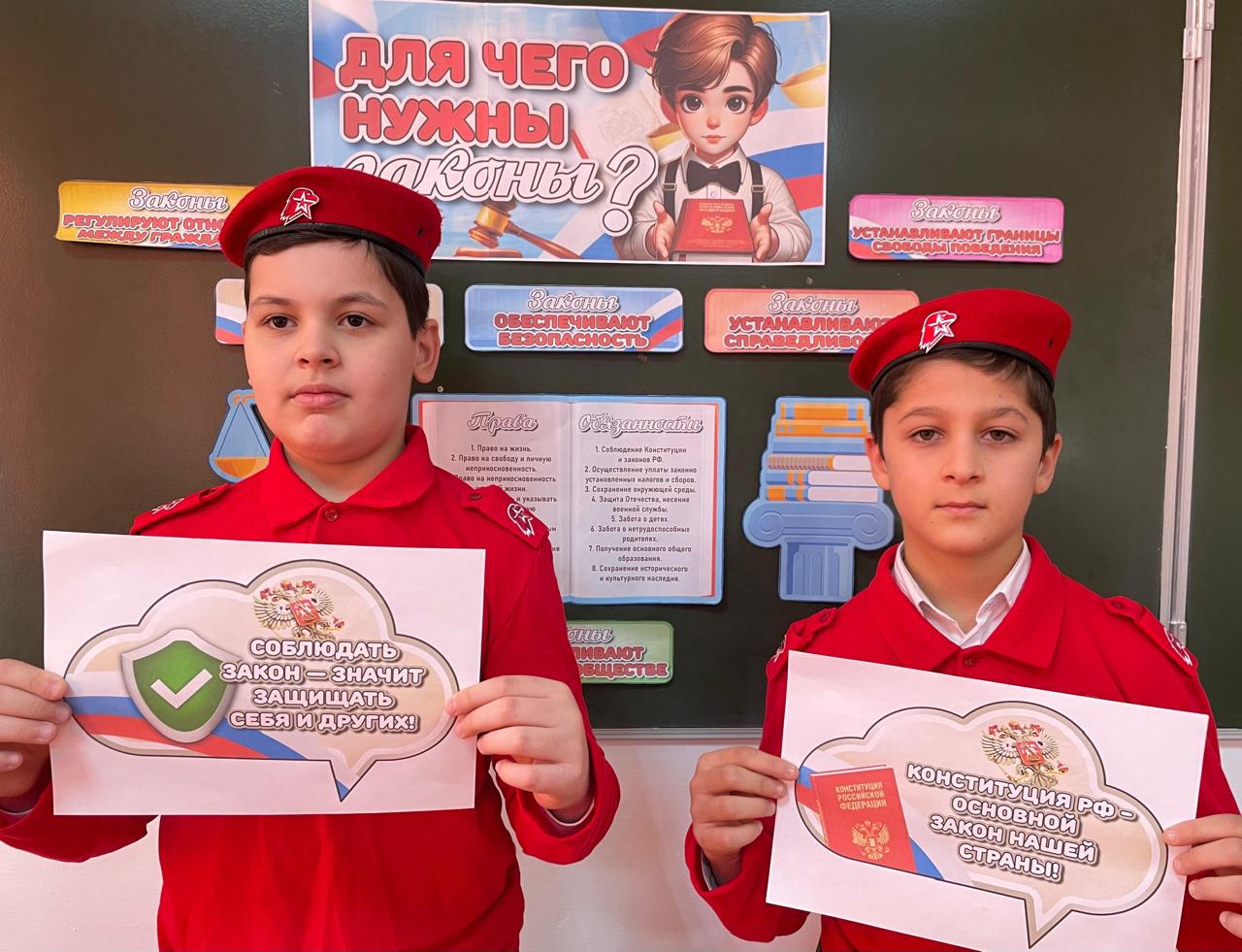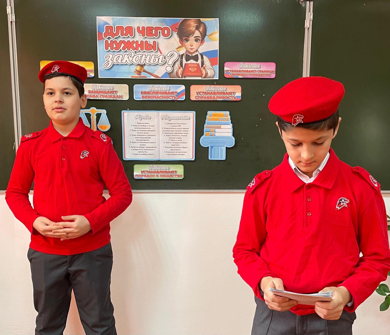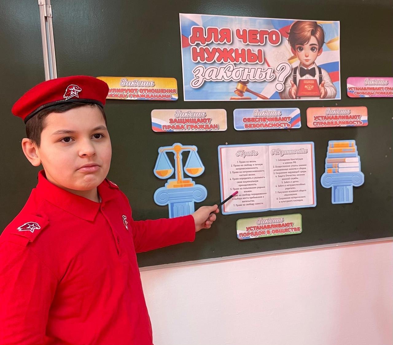 Юнармейцы рассказали ребятам для чего нужны законы, какие права и свободы они защищают и как влияют на повседневную жизнь людей. Школьники также узнали о том, как работают законодательные механизмы в нашей стране и какую роль в этом играют обычные граждане. Обучающиеся единодушно подчеркнули, что законы обеспечивают нашу безопасность и порядок в обществе.