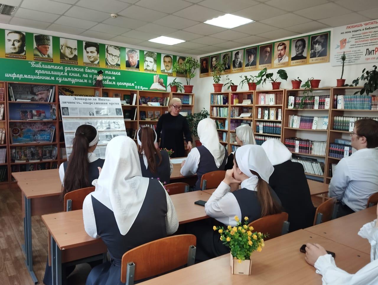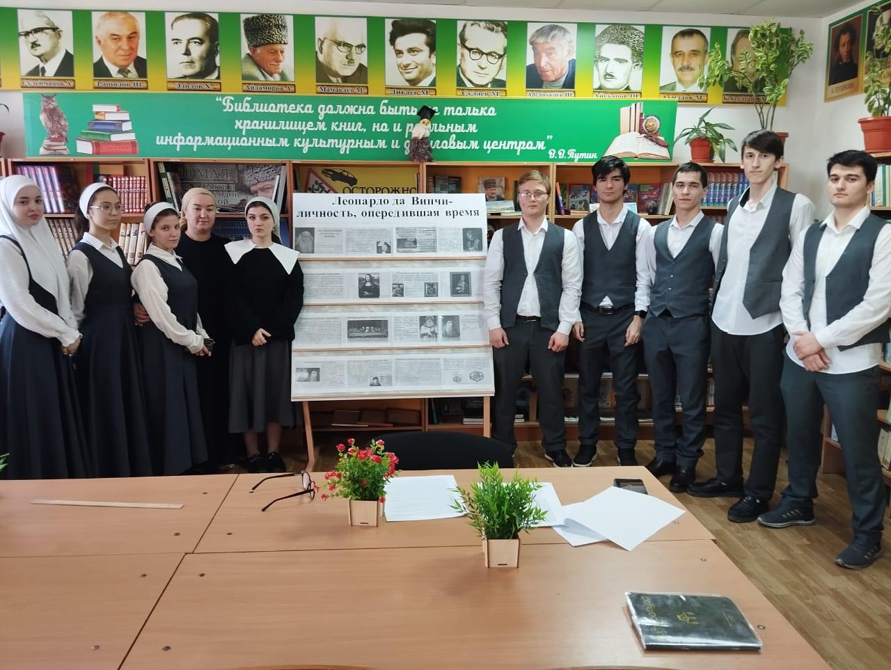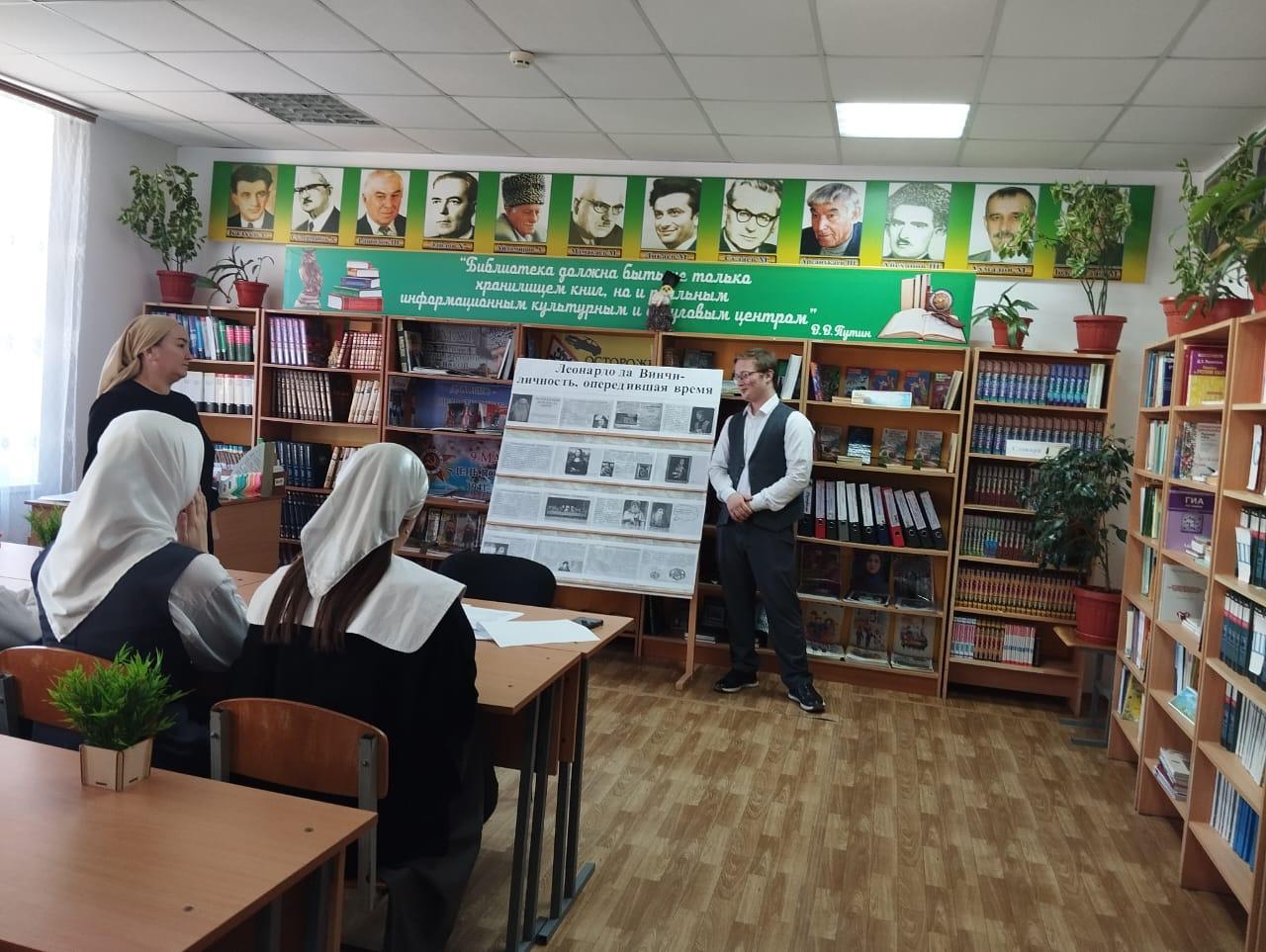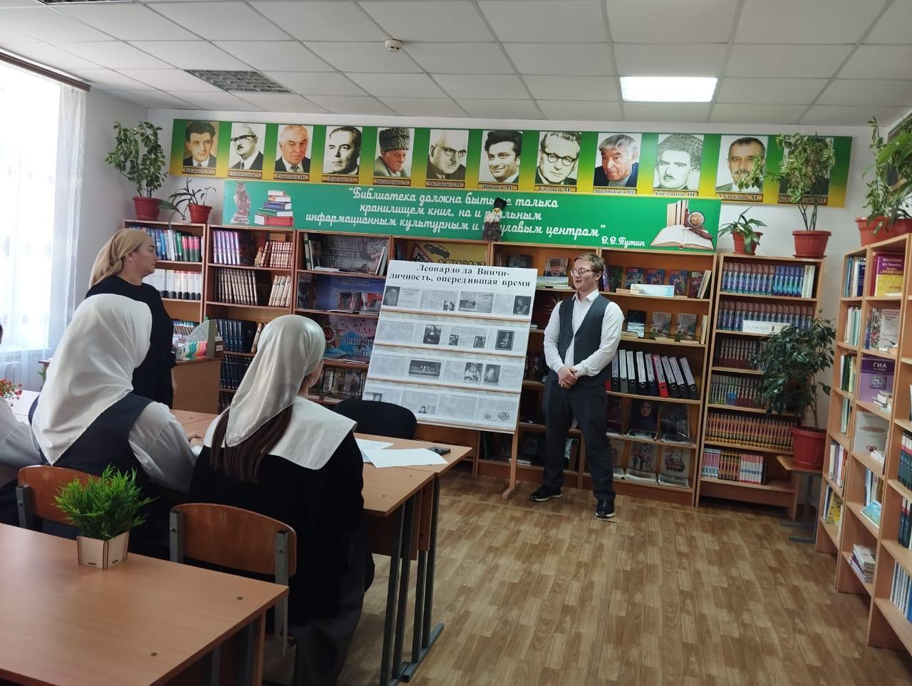 В рамках проведения метапредметной недели русского языка и литературы - 20 декабря 2024 года в читальном зале школьной библиотеки Эльдарова Э.А., учитель русского языка и литературы в 11А классе провела урок о важном «Леонардо да Винчи - личность, опередившая время».