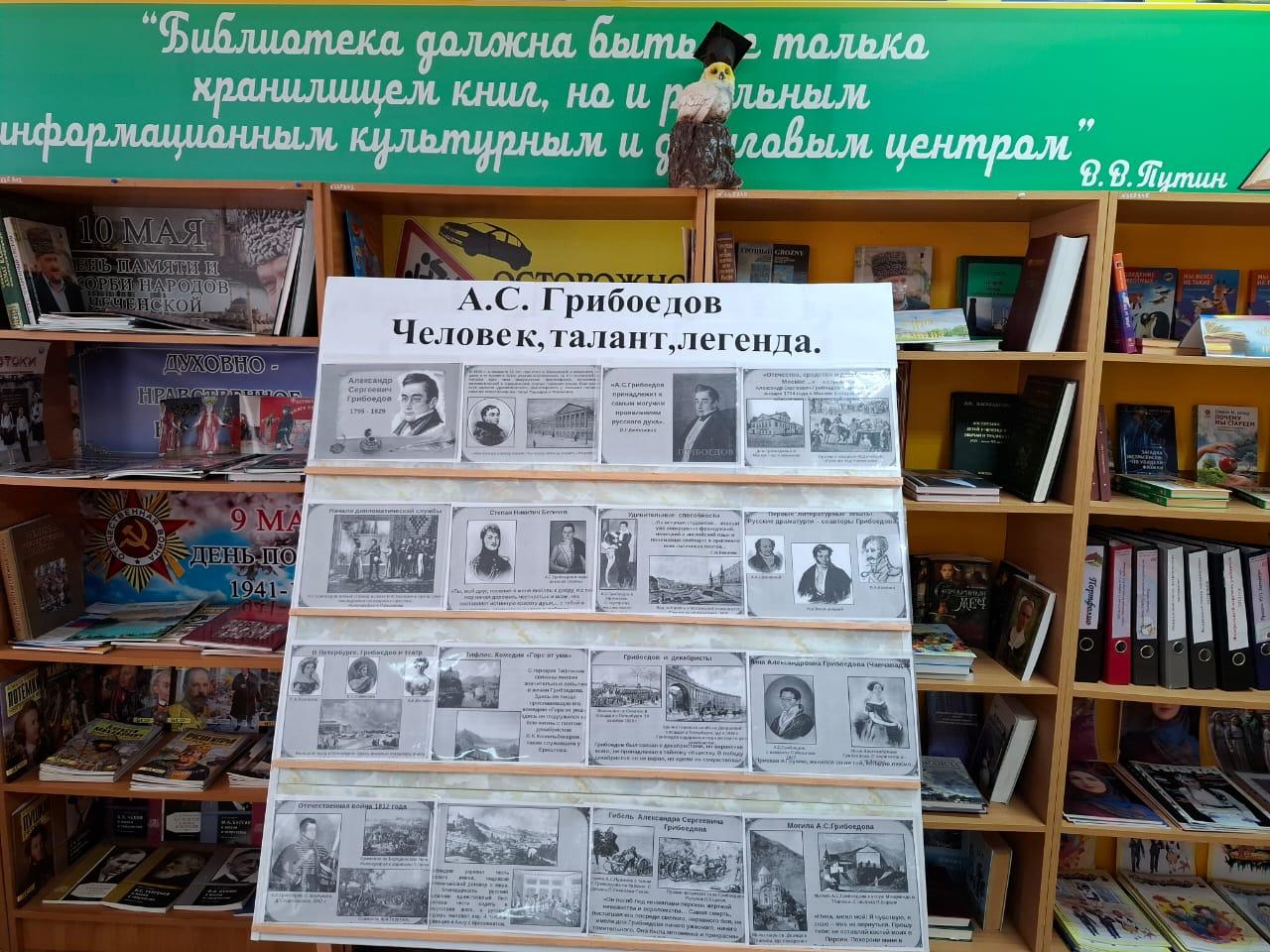 В завершении мероприятия Джабаевой М.А. был проведен обзор выставки «230 лет со дня рождения А.С. Грибоедова». Александр Сергеевич Пушкин сказал о Грибоедове так: «Это один из самых умных людей в России». И со словами поэта нельзя не согласиться. Александр Грибоедов прожил короткую, но очень насыщенную событиями жизнь и стал неотъемлемой частью нашей культуры и истории.