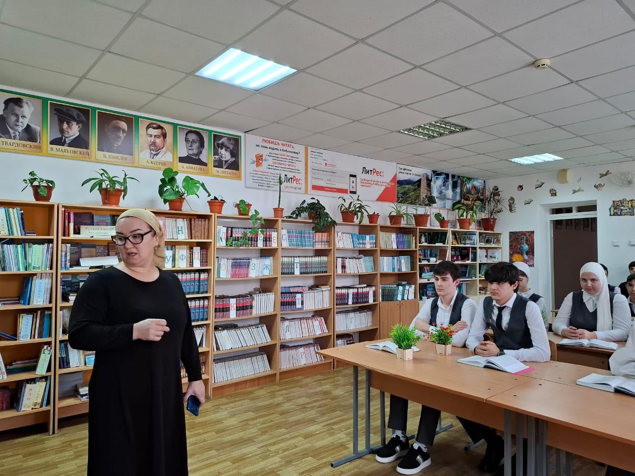 13 января 2025 года в читальном зале школьной библиотеки Эльдарова Э.А., учитель русского языка и литературы для обучающихся 9А класса провела литературный час, посвященный 230-летию со дня рождения А.С.Грибоедова.