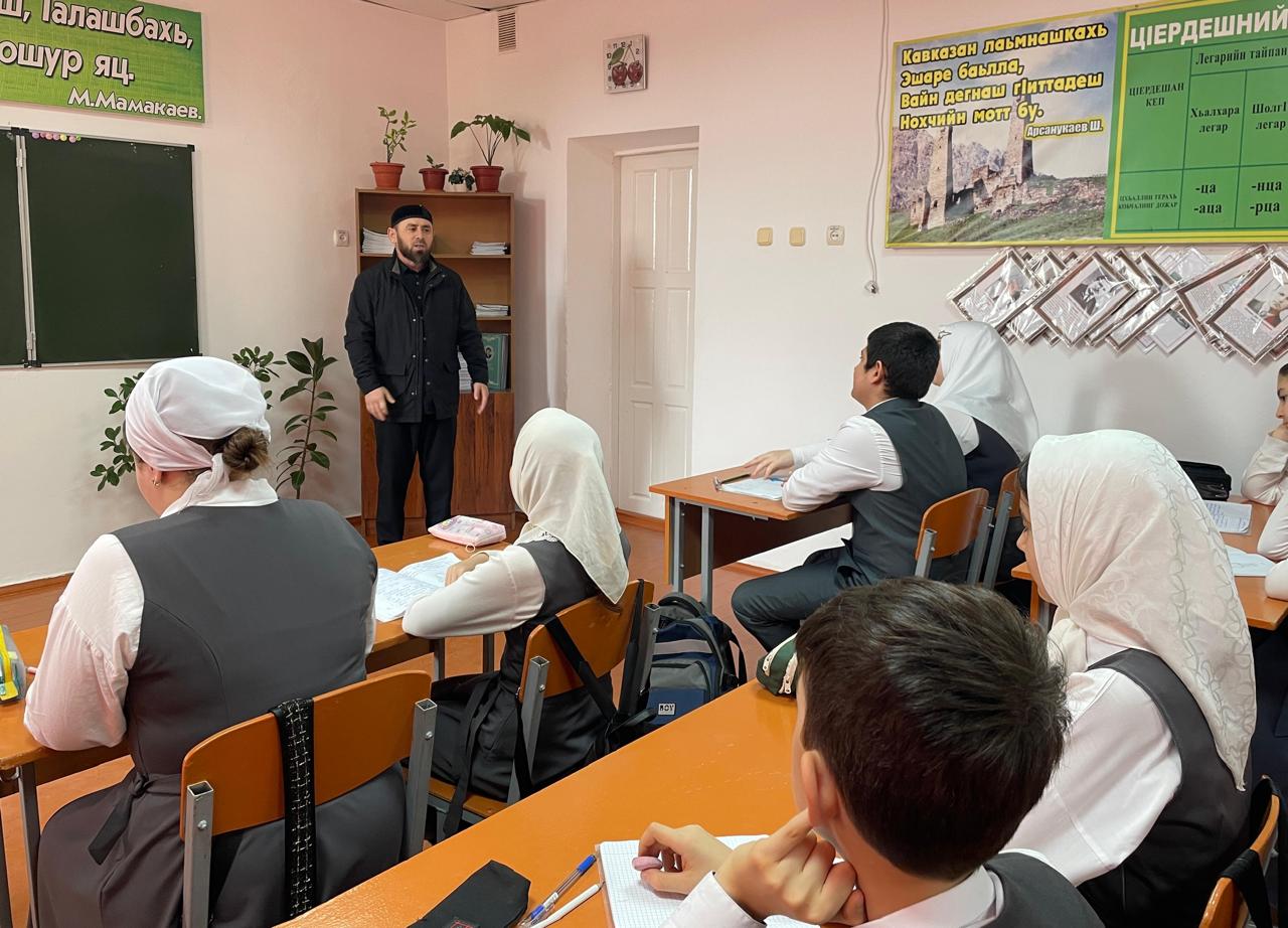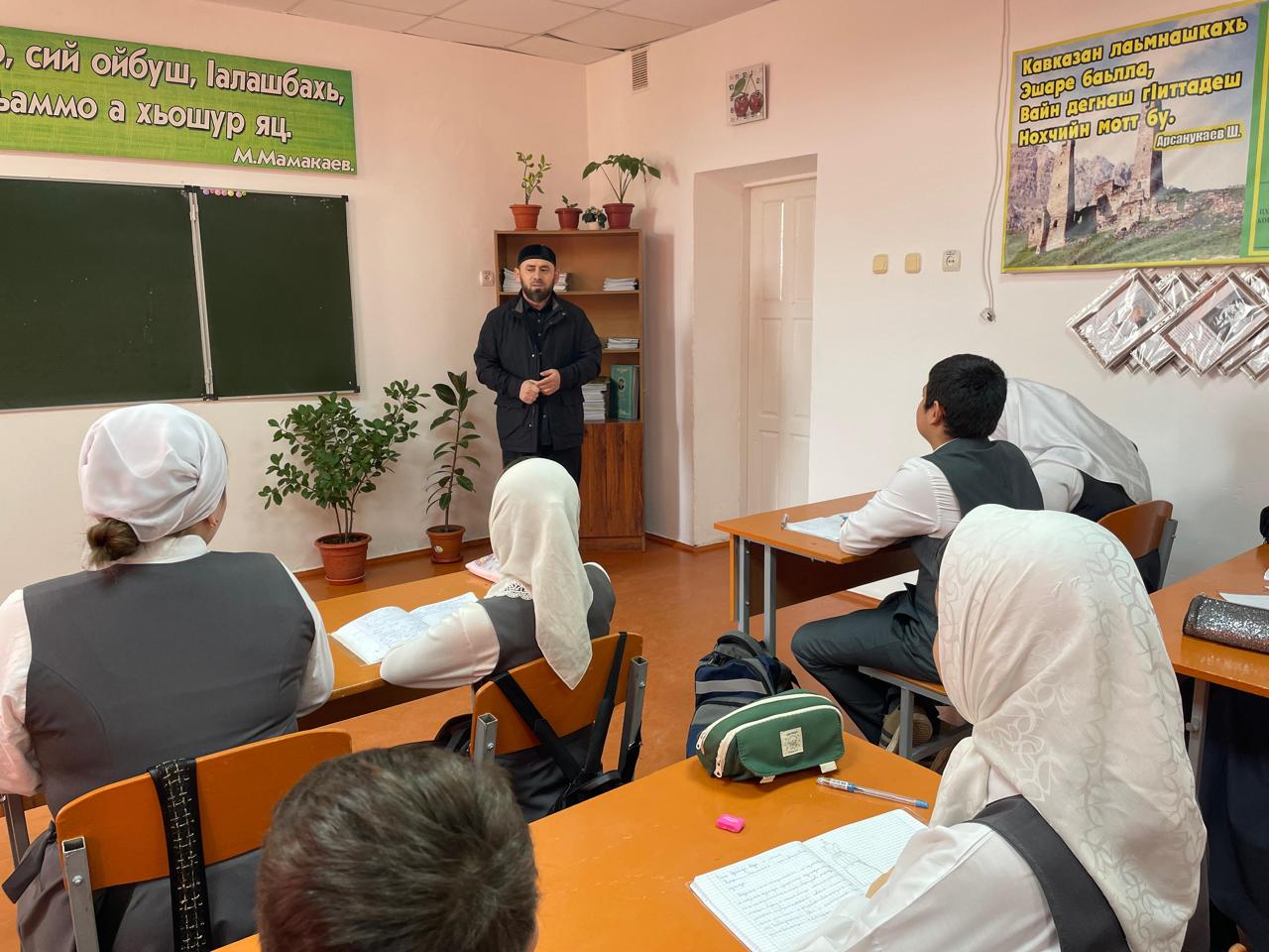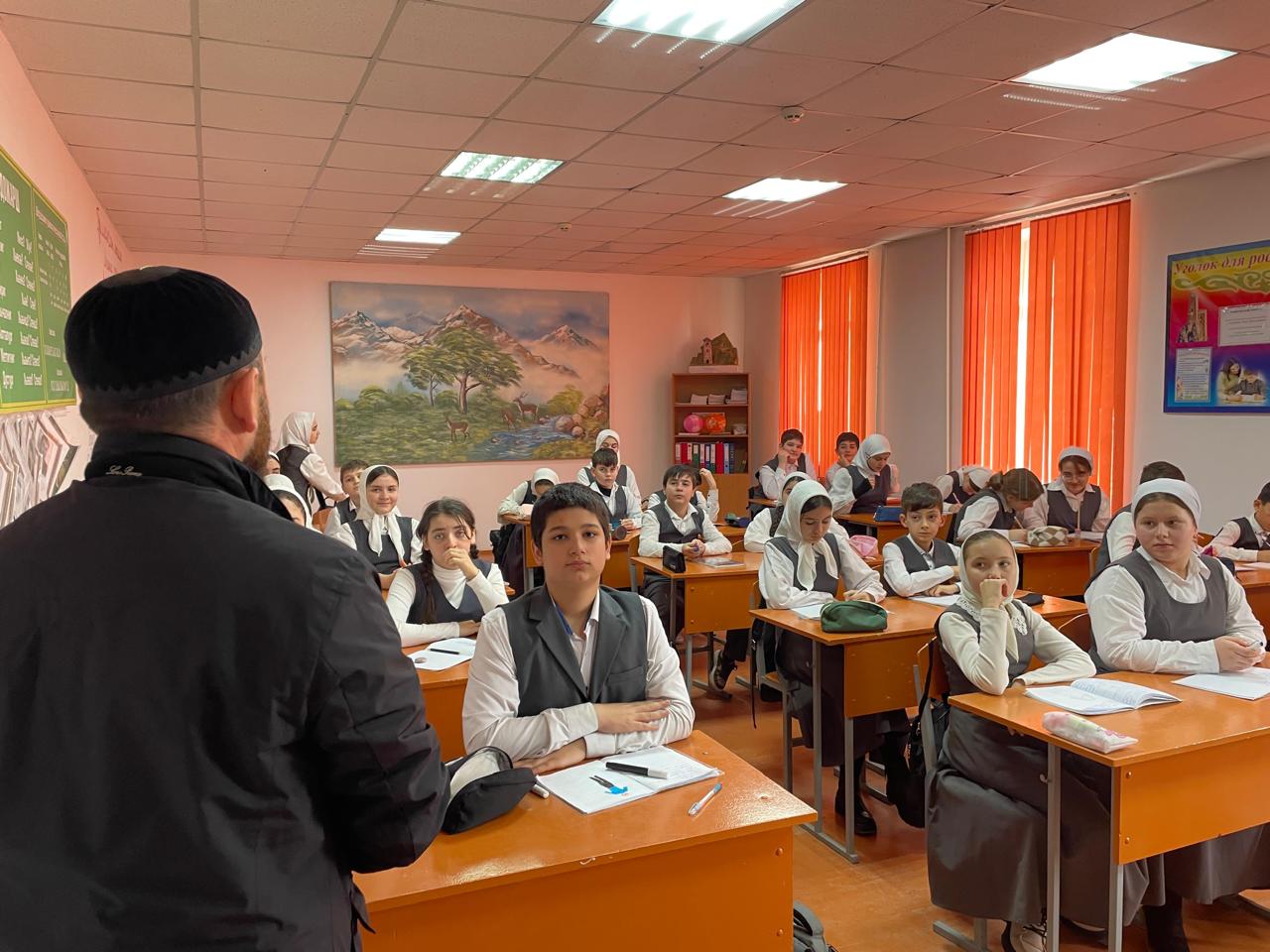 В рамках реализации Единой Концепции духовно-нравственного воспитания и развития подрастающего поколения Чеченской Республики, а также выполнения мероприятий Комплексного плана профилактики экстремизма среди молодежи - 17 января 2025 года имам мечети г.Шелковская Кусаев Нуради Мовладиевич среди обучающихся 6-х классов провел беседу на тему: «Ислам о значимости мира и согласия в обществе».