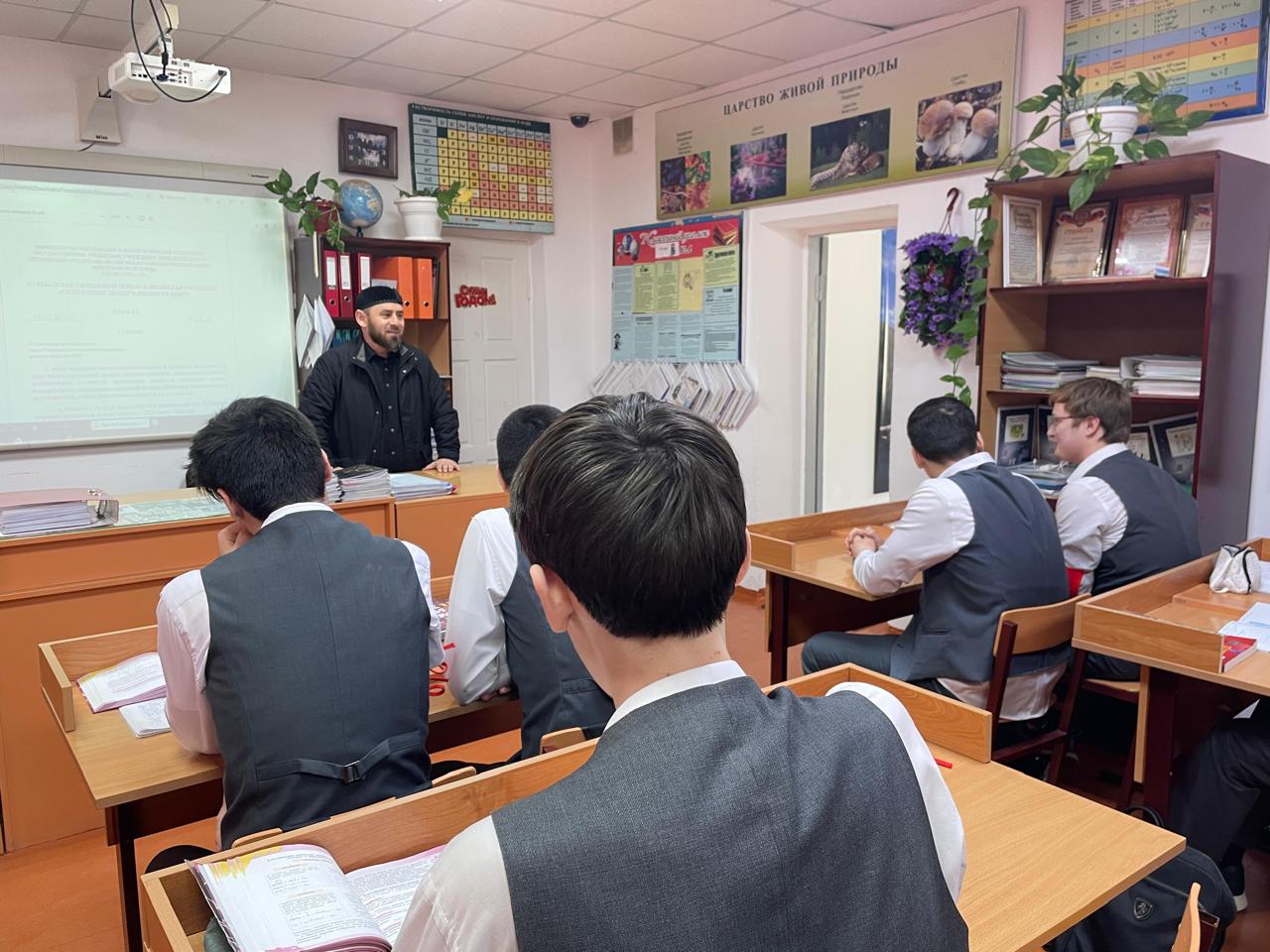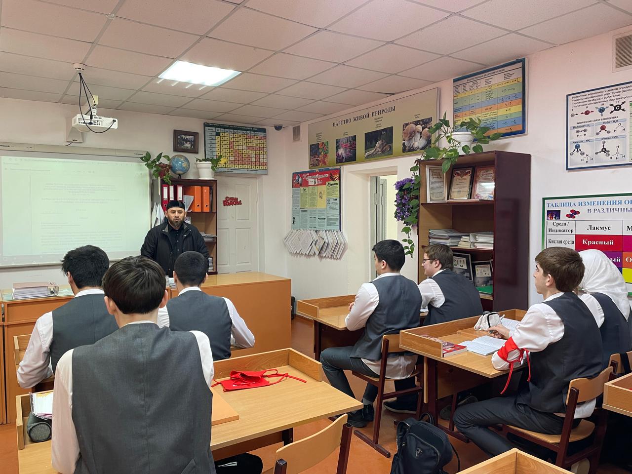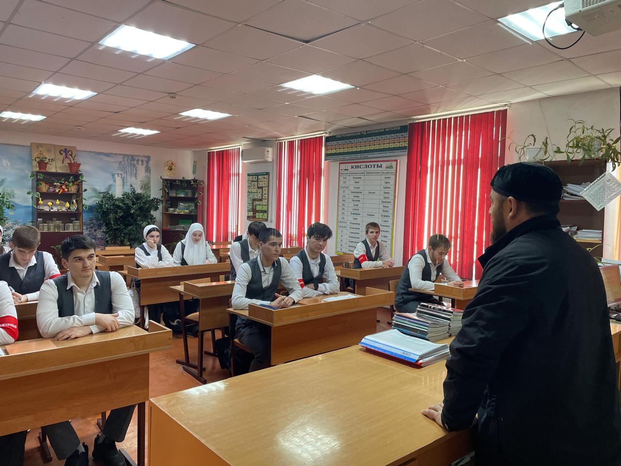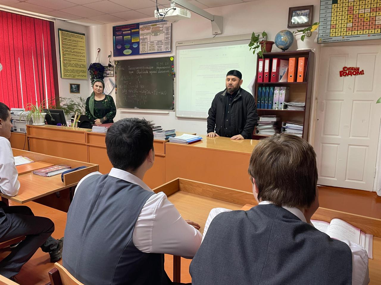 В ходе беседы имам г.Шелковская призывал обучающихся к уважительному отношению к людям независимо от их этнической, культурной или религиозной принадлежности, уважительного и корректного отношения к учителям, взрослым и сверстникам и общения в социальных сетях.