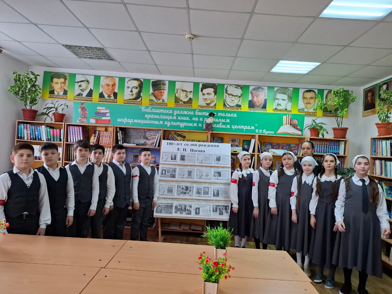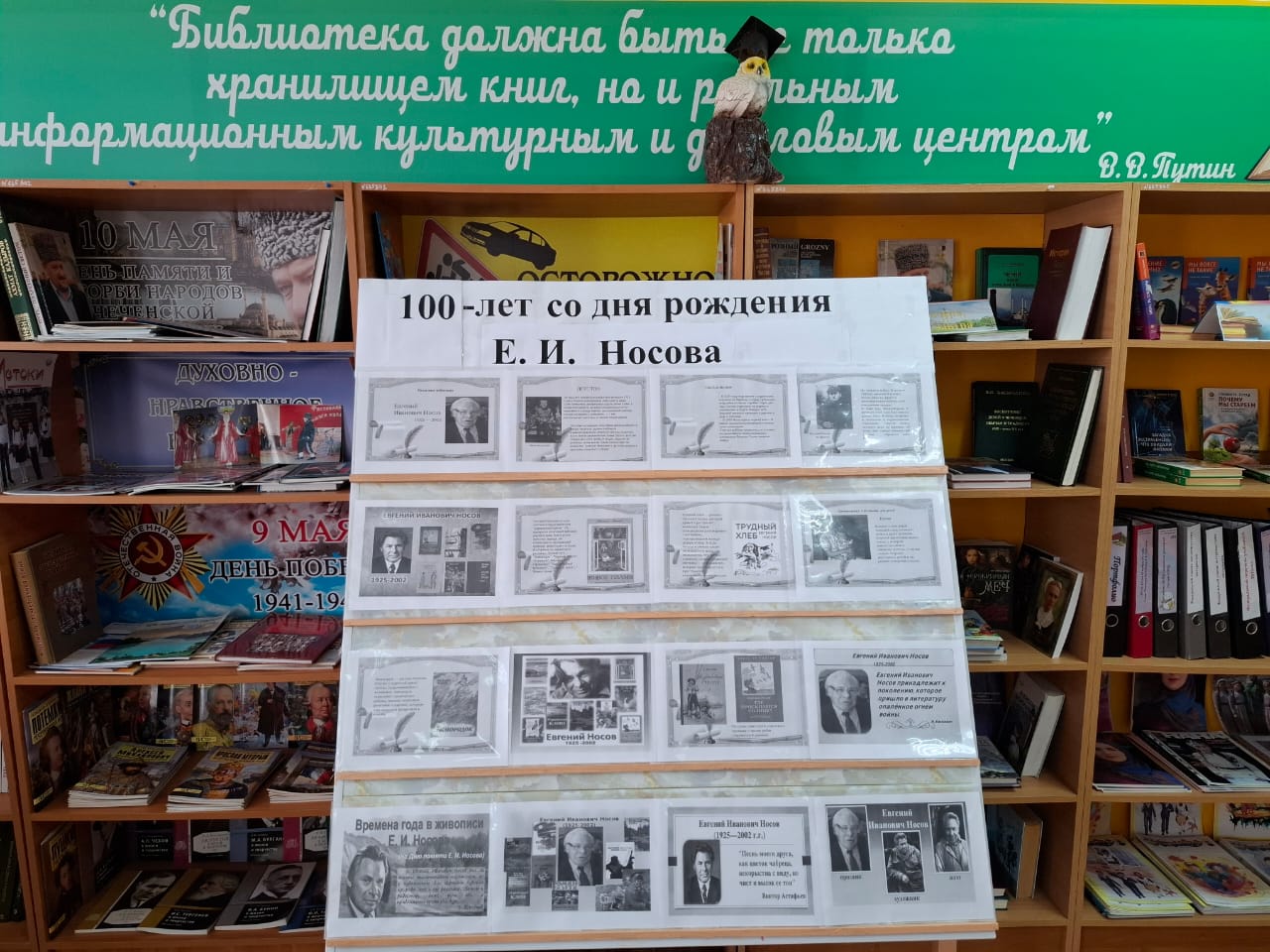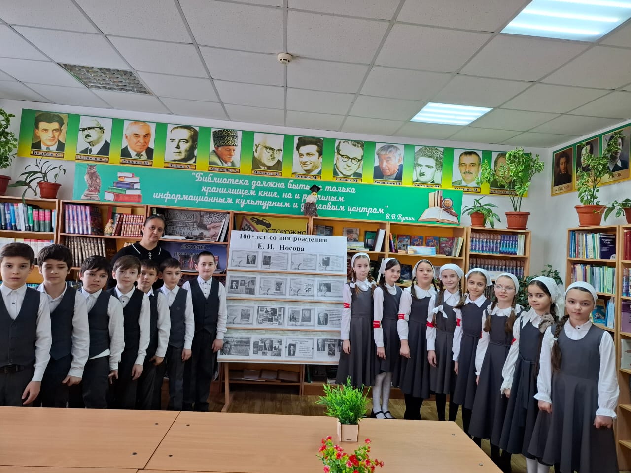 Заведующая библиотекой Джабаева М.А. познакомила читалей с творческим наследием писателя, которое пользуется широкой известностью, с биографией русского писателя, художника, фронтовика, а также с его книгами. Из всех произведений, с которыми ребята познакомились, большой интерес вызвал рассказ «Белый гусь», в обсуждении которого, после громкого прочтения все приняли активное участие. Завершился урок викториной по творчеству писателя.