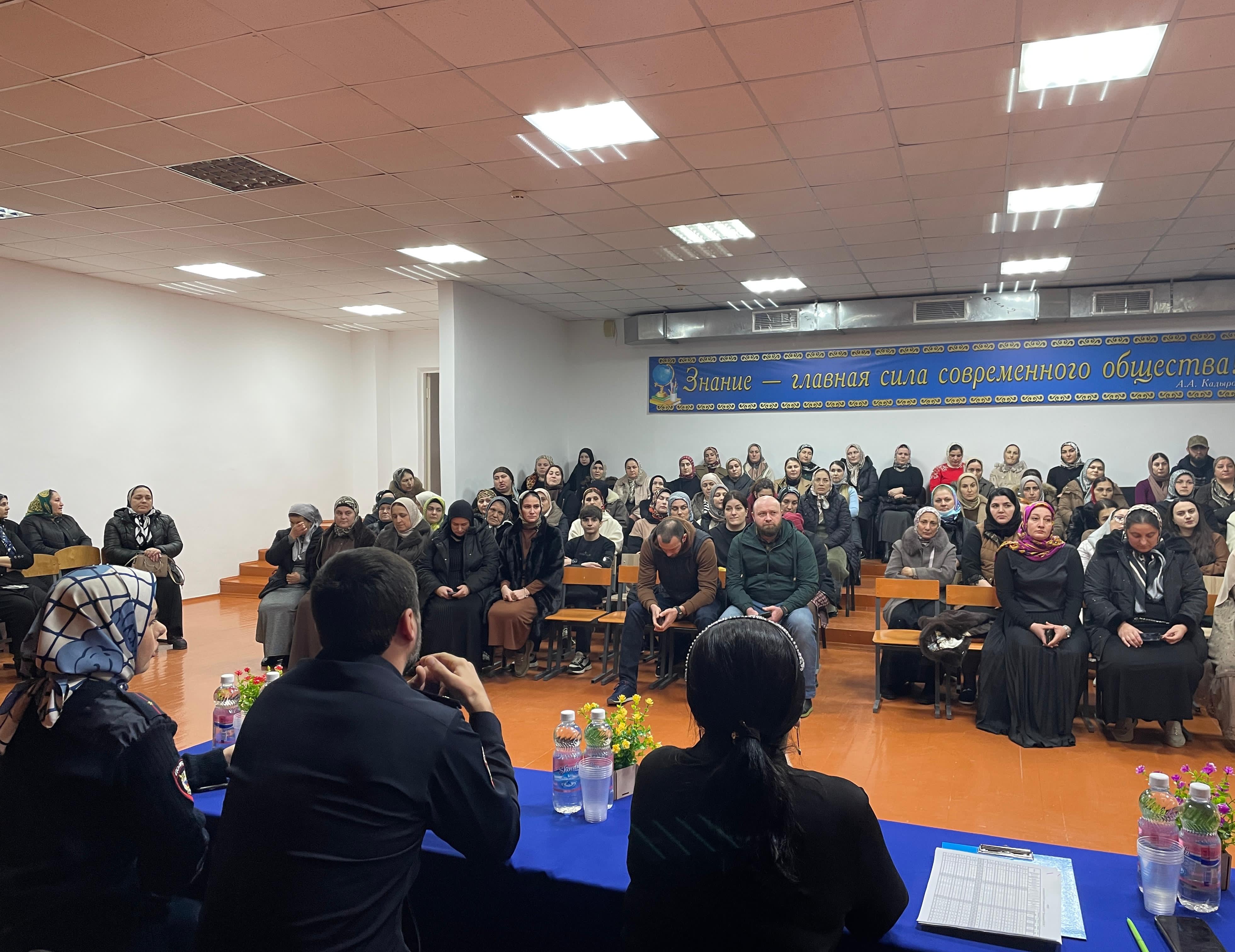 прошло общешкольное родительское собрание с представителями сотрудников ПДН и имама мечети г.Шелковская, на котором были затронуты