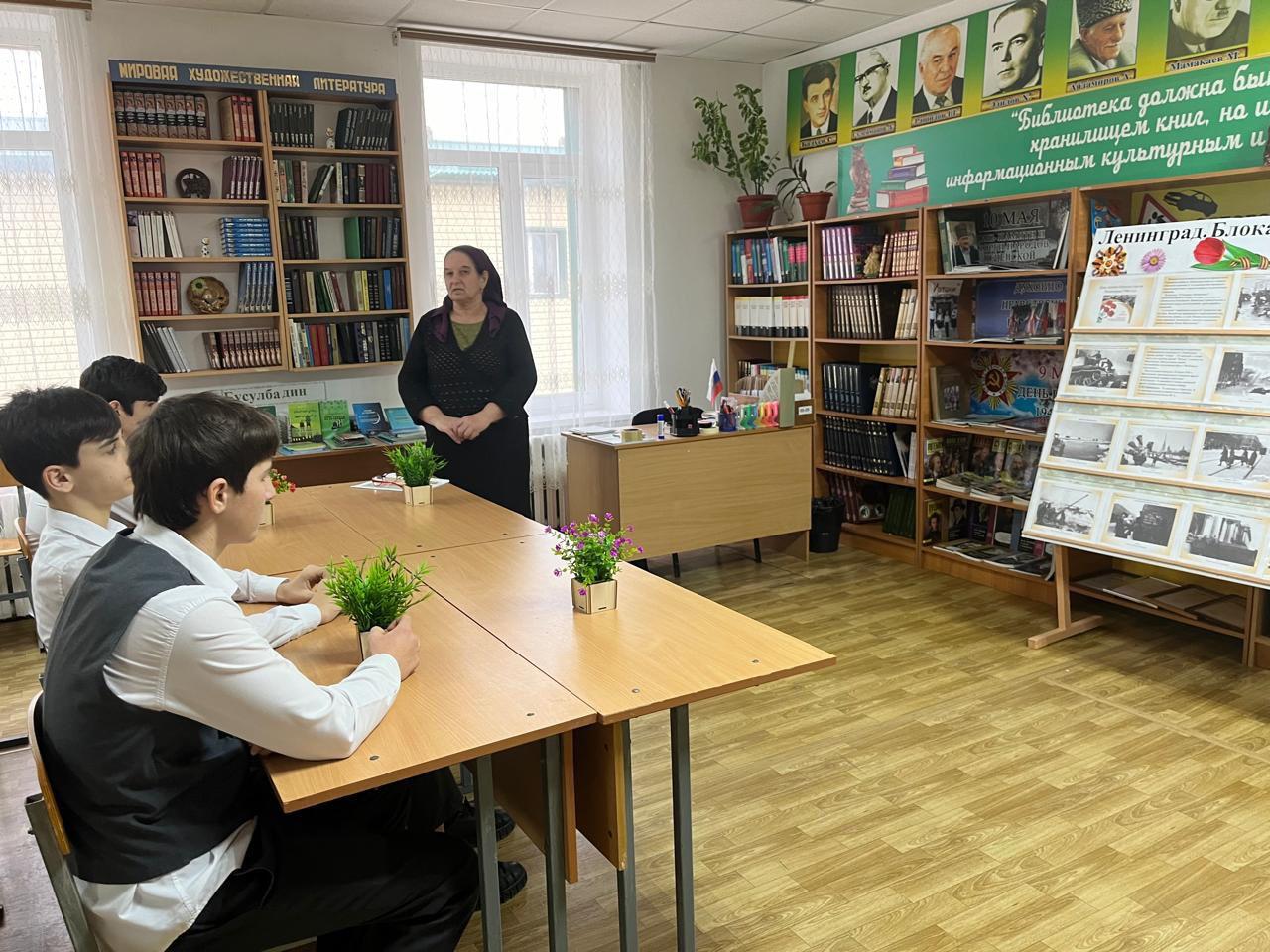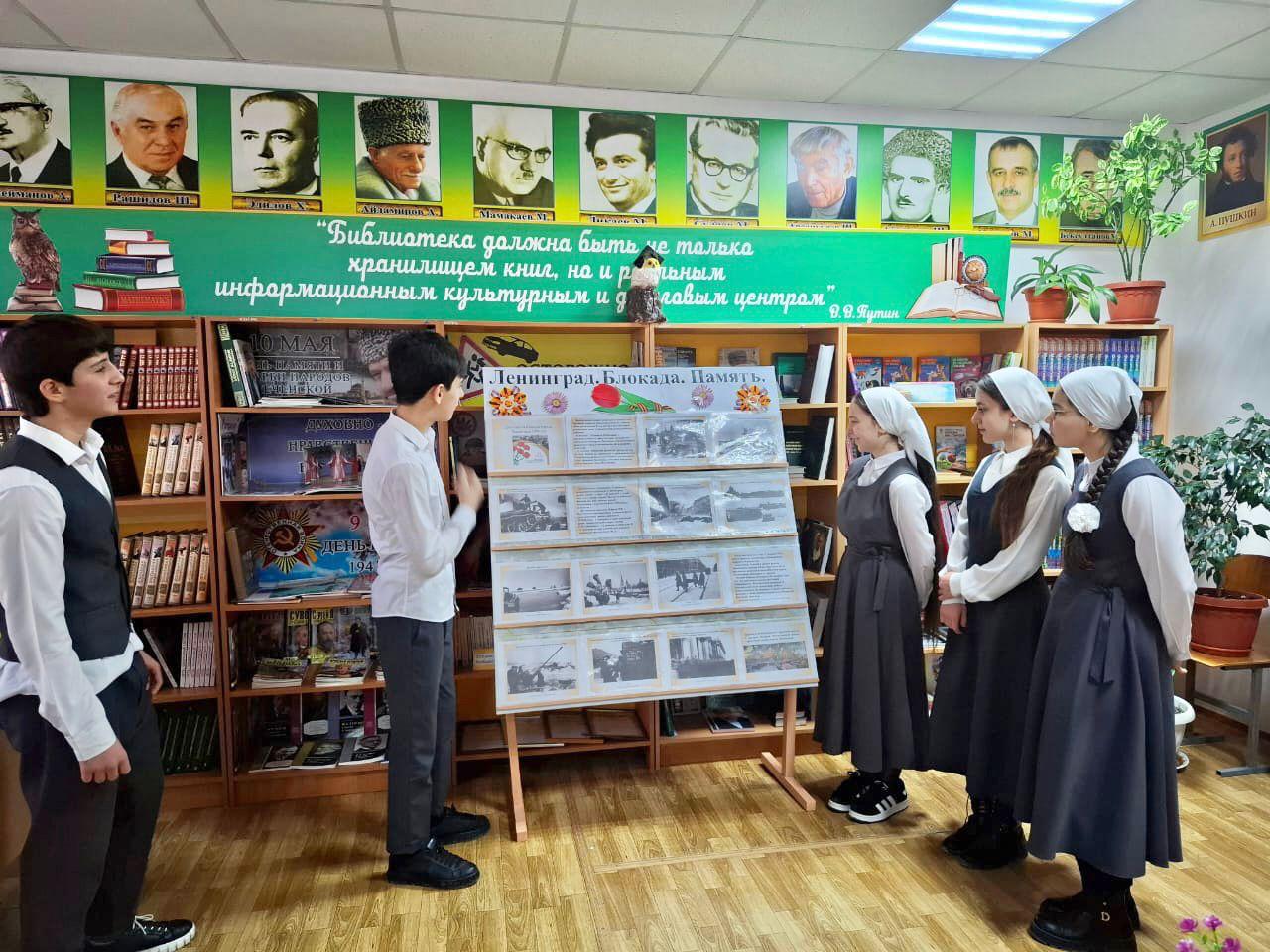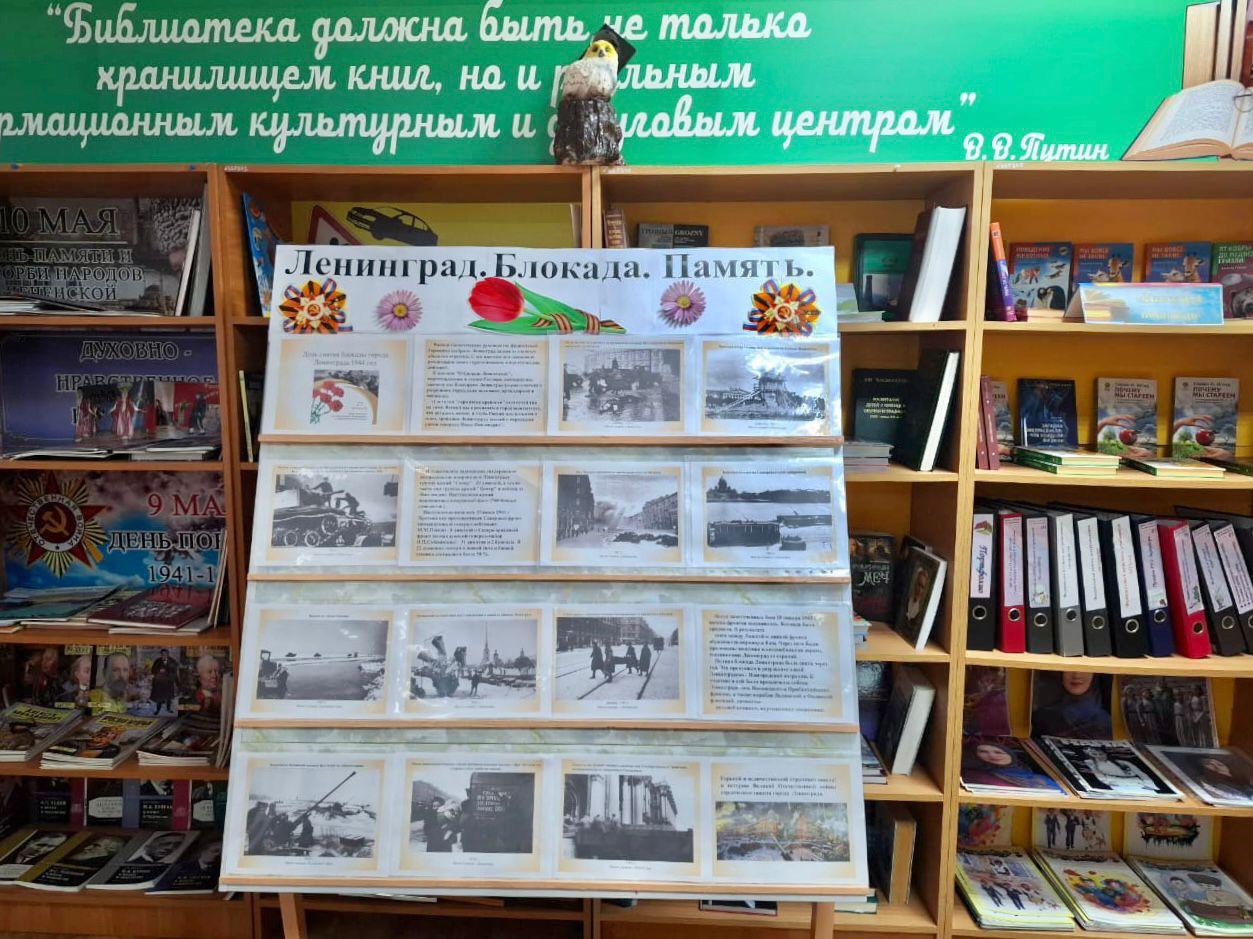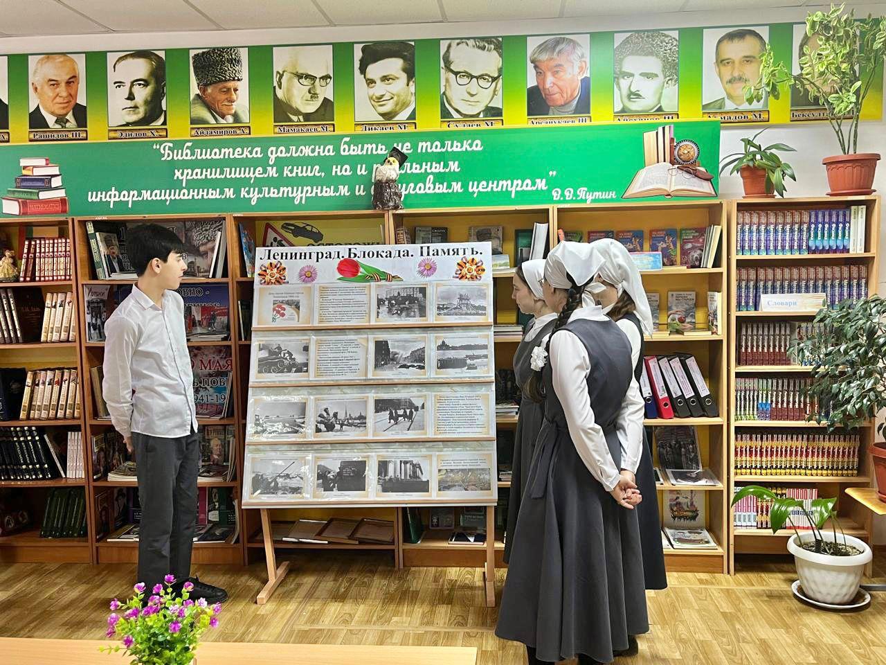 В честь этой даты в читальном зале школьной библиотеки Джабаева М.А., зав.библиотекой оформила книжно-иллюстративную выставку «Ленинград. Блокада. Память!».