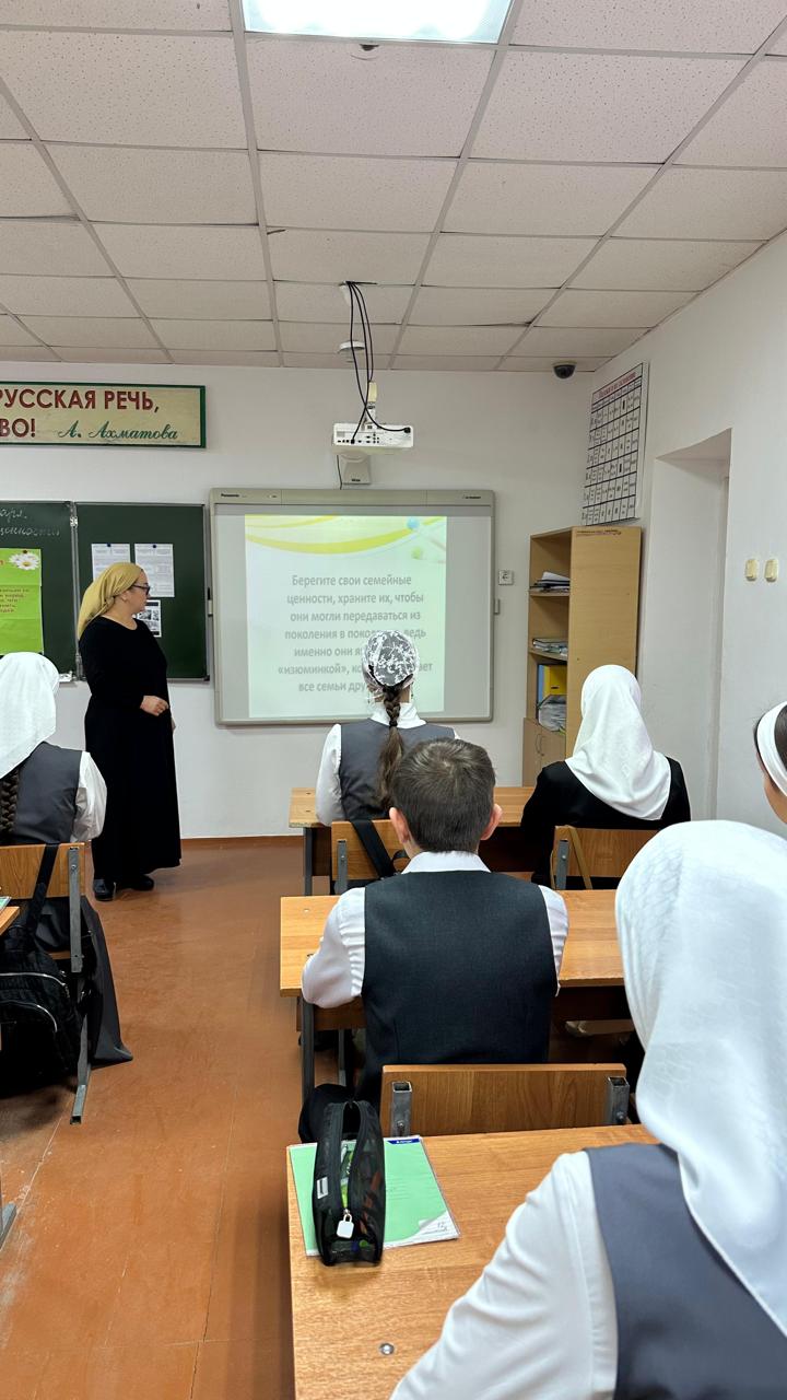 В рамках популяризации государственной политики в области защиты семьи и сохранения традиционных ценностей - 27 января 2025 года Эльдарова Э.А. для обучающихся 9А класса провела классный час в форме актуального разговора на тему: "Семья и семейные ценности".