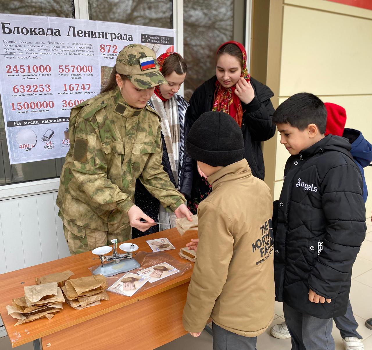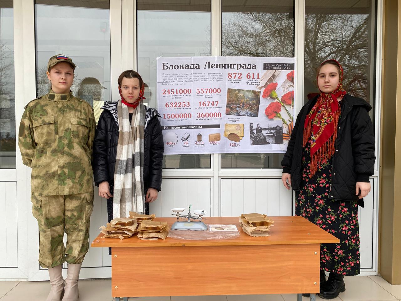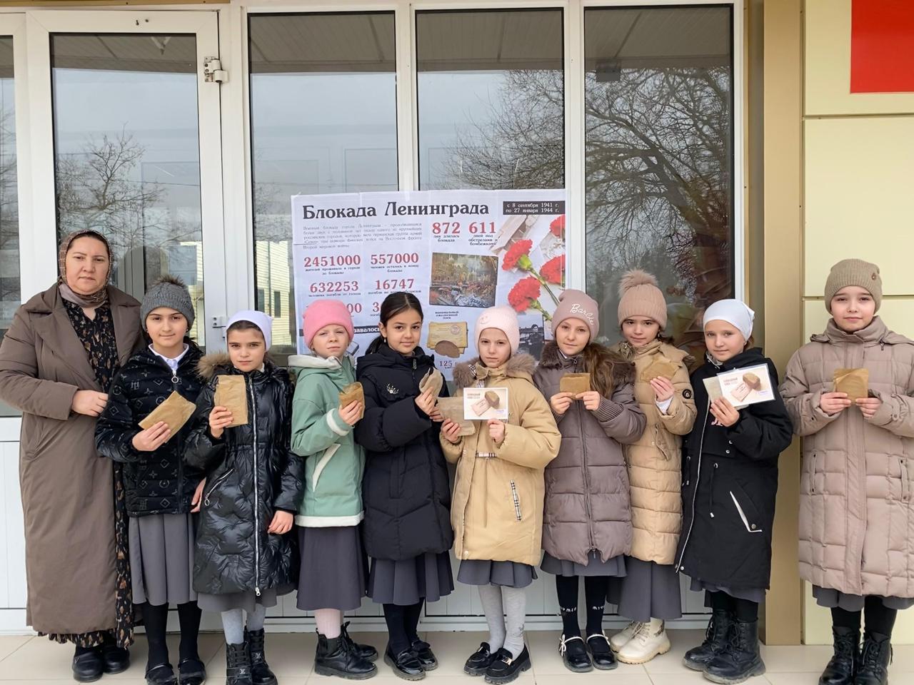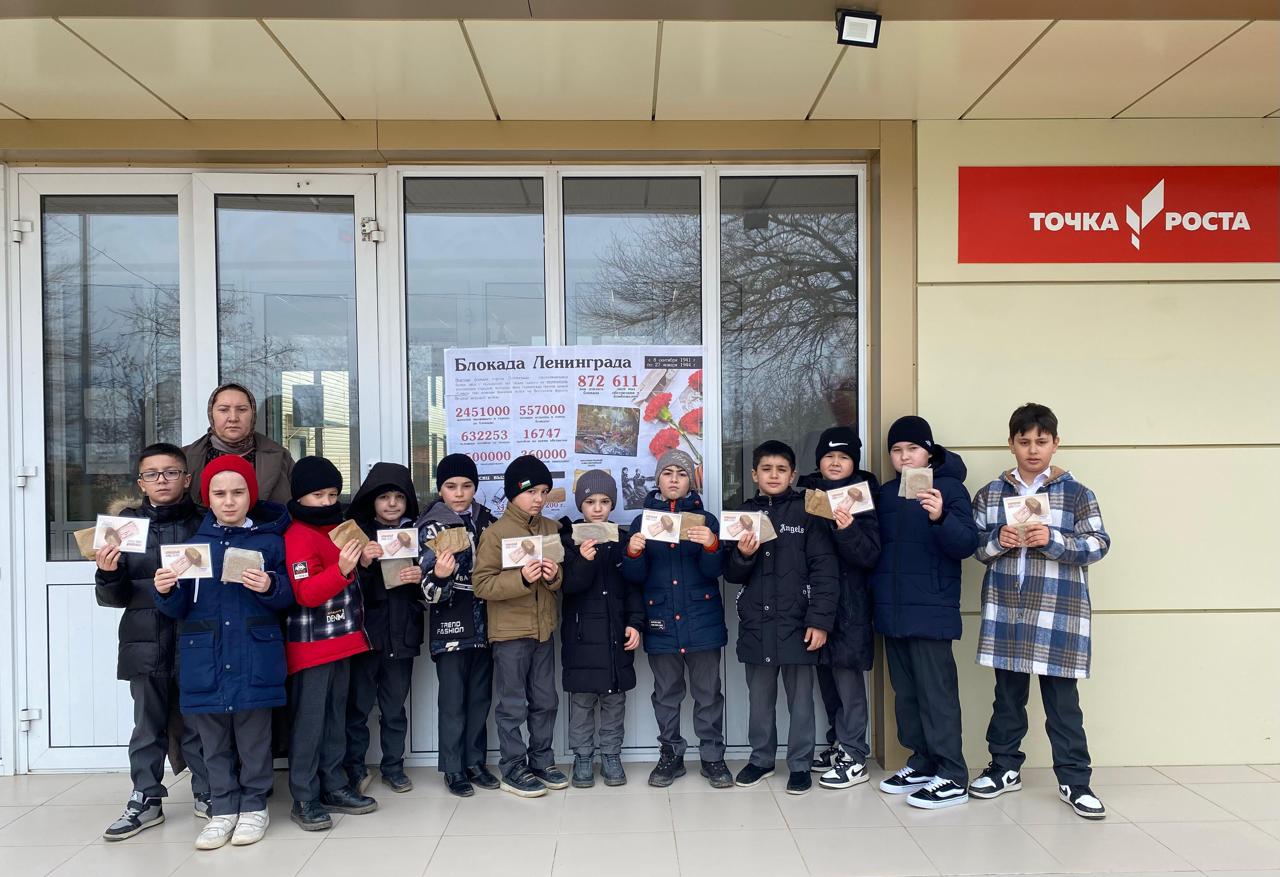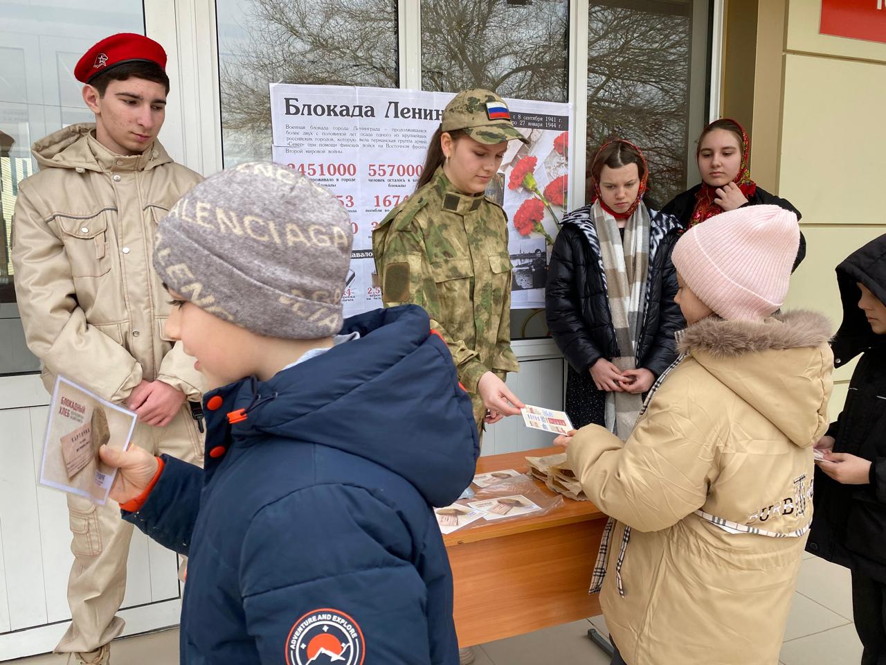 Аушева Татьяна Темирболатовна, педагог-психолог совместно с юнармейцами для обучающихся 3Б и 7А классов провели Всероссийский урок памяти «Блокадный хлеб».