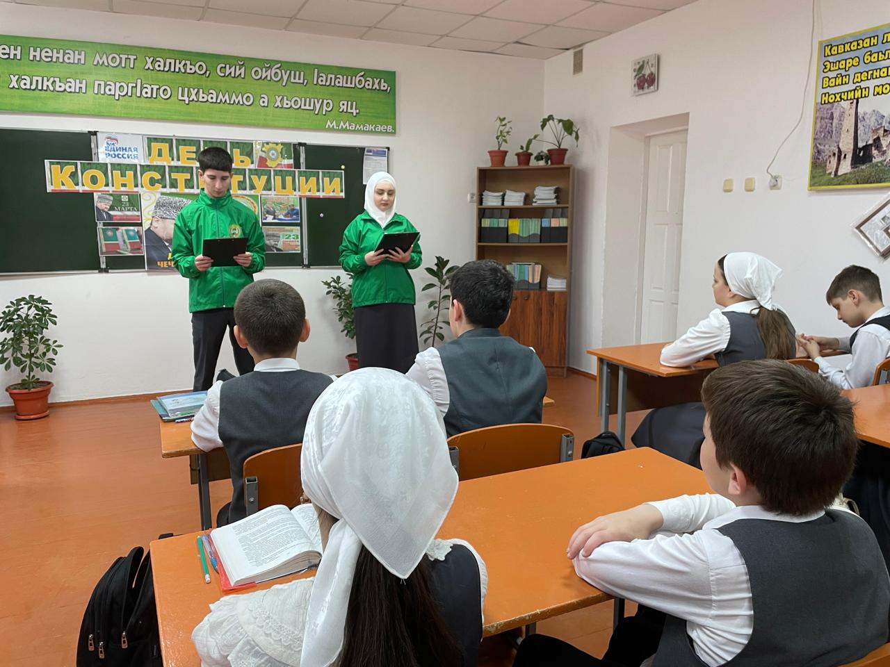 В рамках празднования Дня Конституции Чеченской Республики - 20 марта 2025 года активисты ЧРОО Единой детско-юношеской организации им.Первого Президента ЧР, Героя России А-Х.А. Кадырова «Юные Кадыровцы» провели историко-патриотический час «23 марта - День Конституции Чеченской Республики» для обучающихся 6А класса.