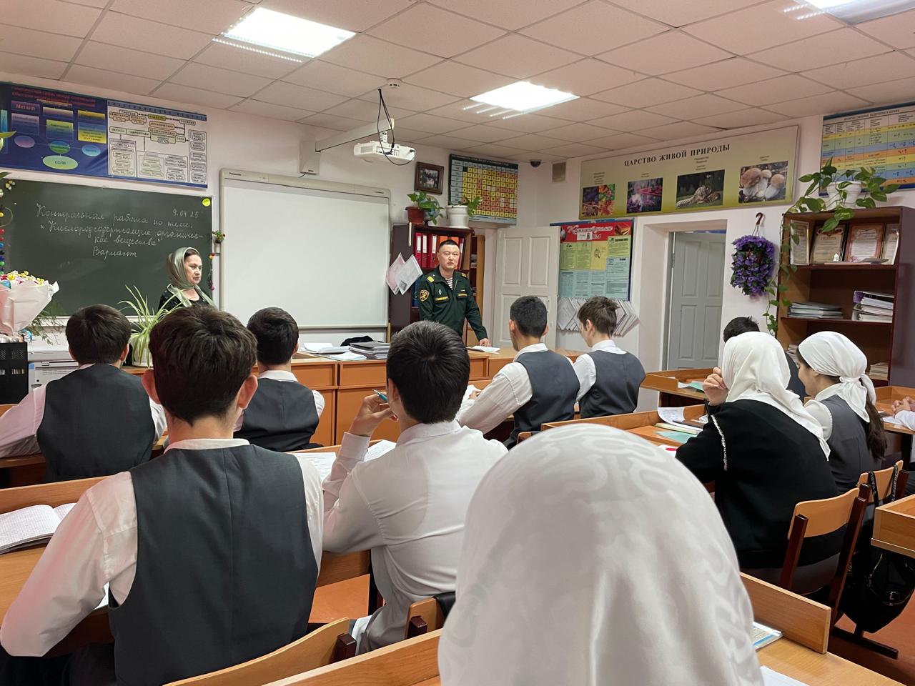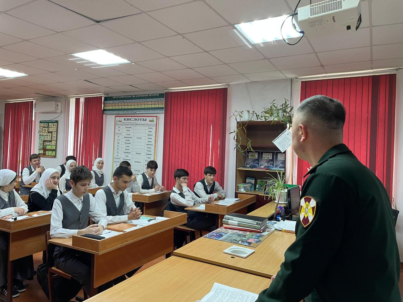 В рамках Года Защитника Отечества и 80-летия Победы в Великой Отечественной войне - 9 апреля 2025 года представитель в/ч-6904, сержант Исмухамбетов Э.Х. провел урок мужества «Герои многих поколений на страже Родины моей»" среди обучающихся 10-х классов.