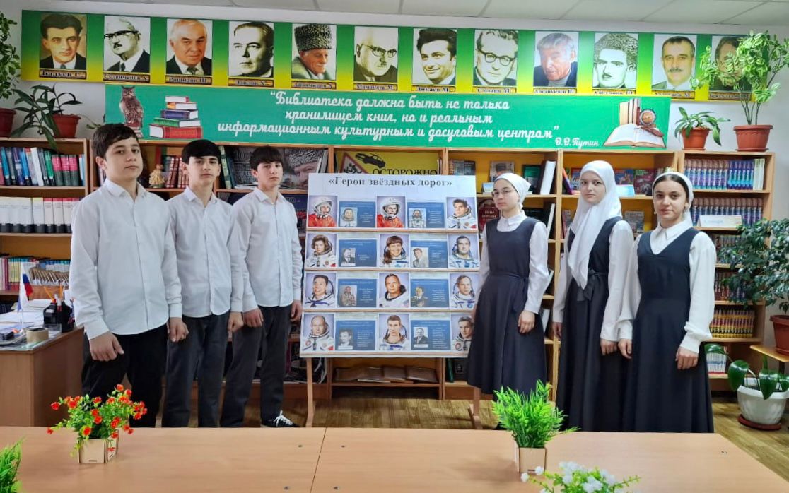 В библиотеке МБОУ «СОШ №3 г.Шелковская» ко Дню космонавтики прошла обзорная выставка "Герой звёздных дорог"