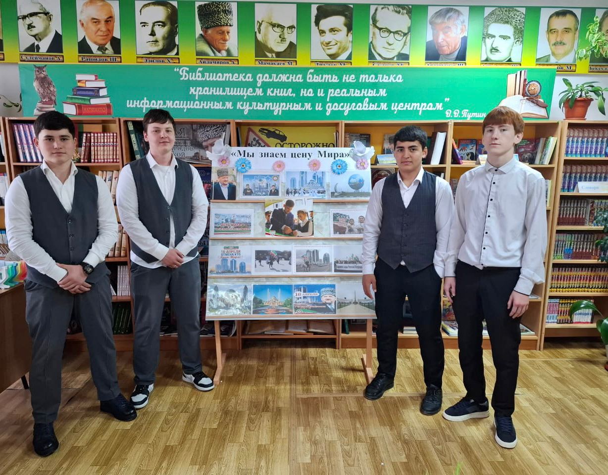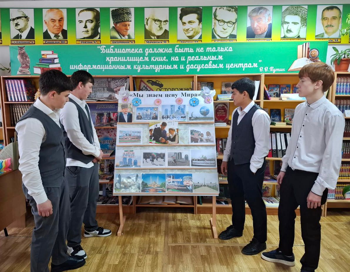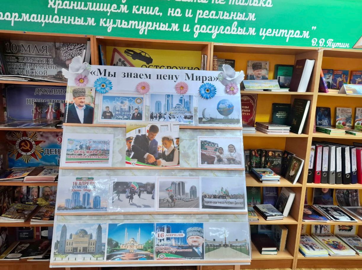 16 апреля 2009 году был отменен режим контртеррористической операции, действовавший на территории Чеченской Республики с 1999 года. К этой знаменательной дате Джабаева М.А., зав.библиотекой подготовила книжную выставку: «Мы знаем цену мира», в ходе которой рассказала присутствующим о драматическом периоде в истории чеченского народа, унесшем жизни десятков тысяч людей.