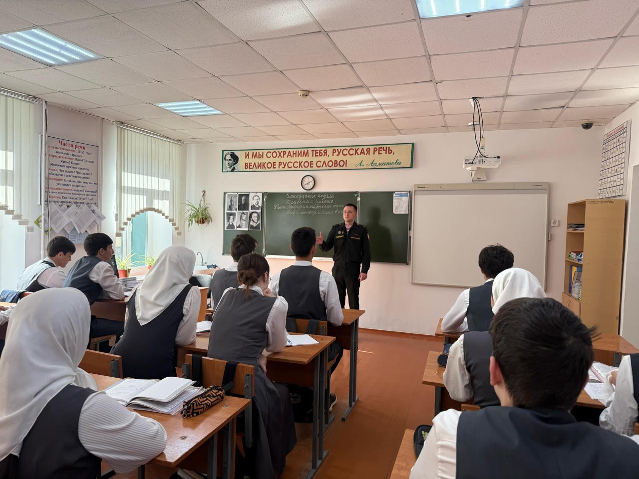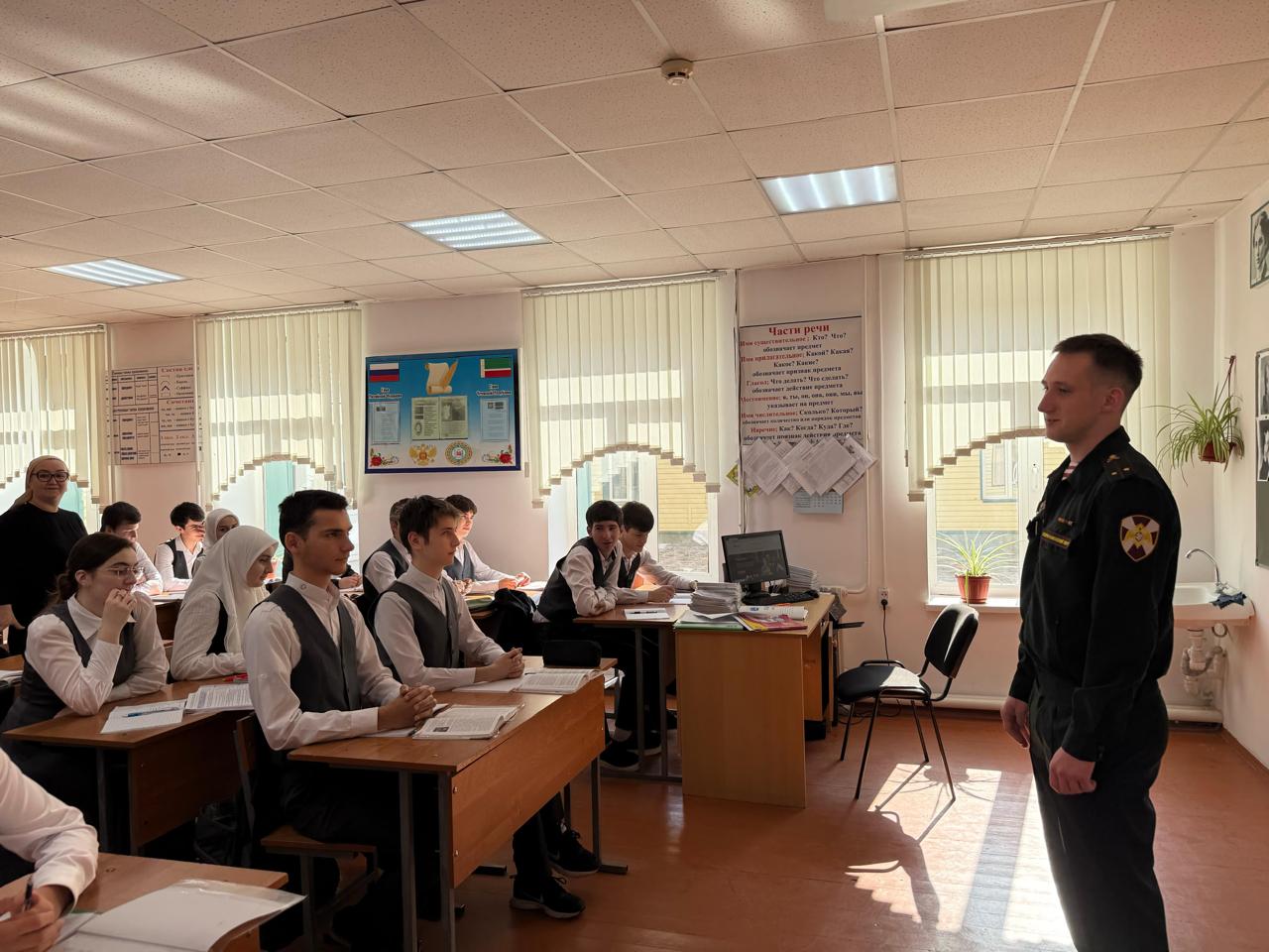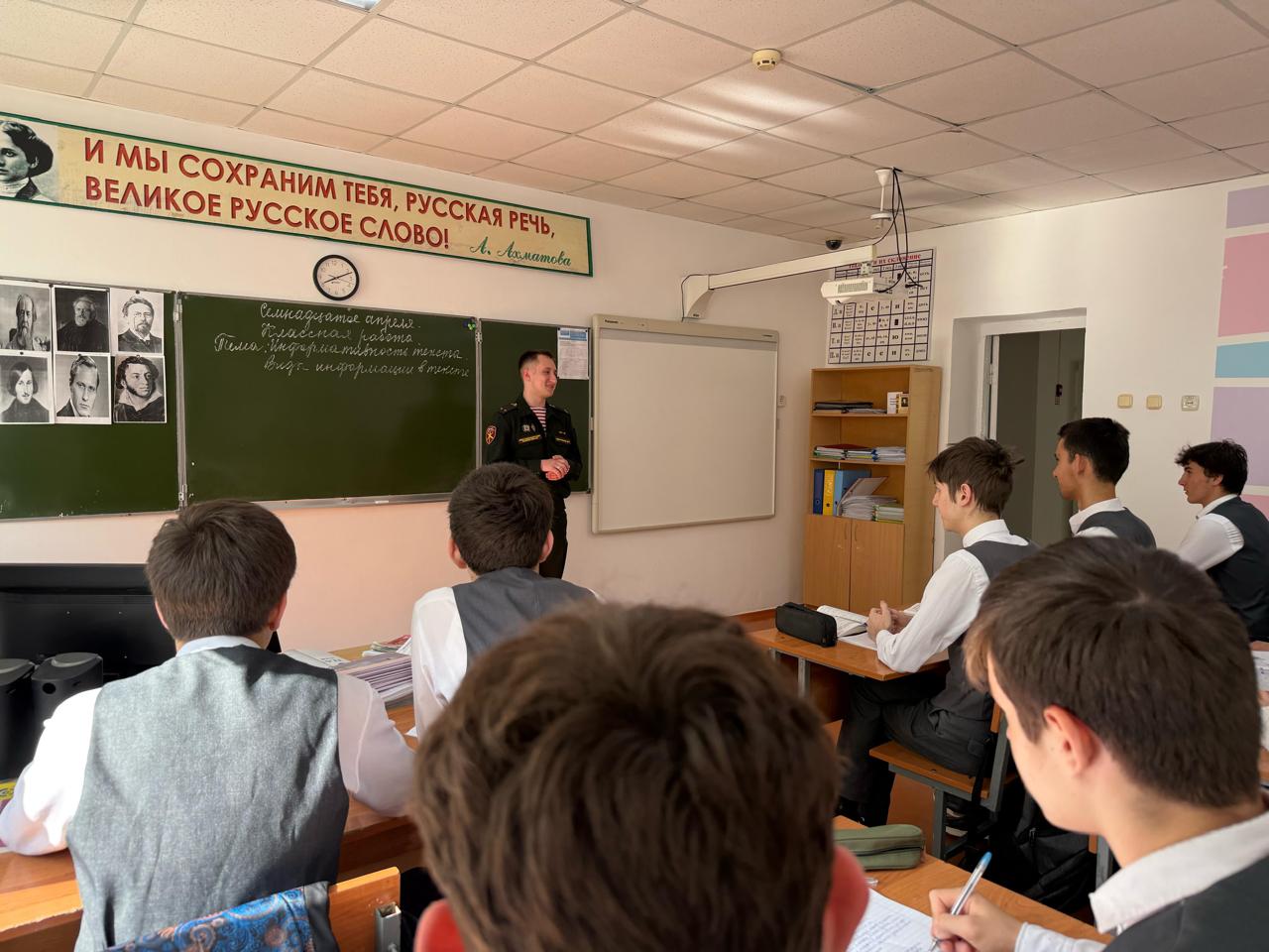 С целью агитации выпускников на поступление в военные вузы России - 17 апреля 2025 года перед старшеклассниками нашей школы выступил Кубрак Дмитрий Сергеевич, лейтенант, старший помощник начальника группы по военно-политической работе - психолог в/ч -6499.