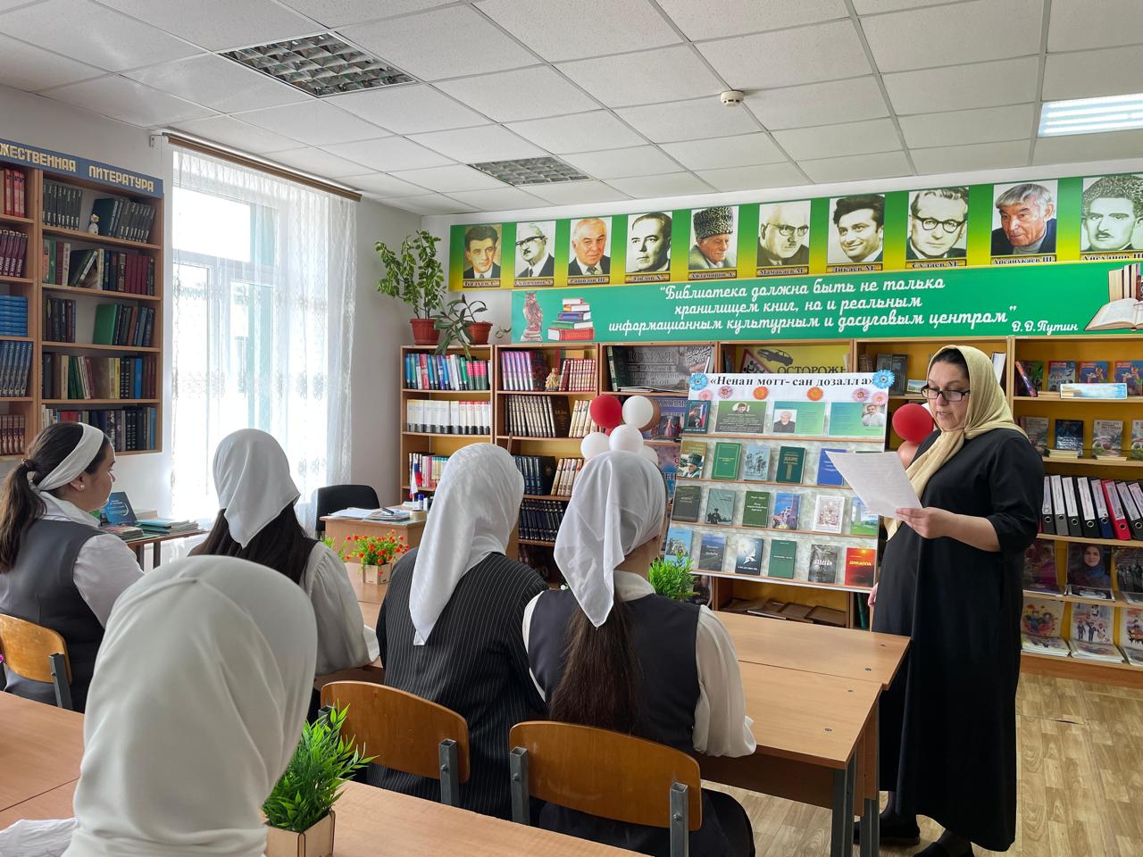 В читальном зале МБОУ «СОШ №3 г.Шелковская» провели тематическое мероприятие, приуроченное ко Дню чеченского языка «Ненан мотт- сан дозалла».