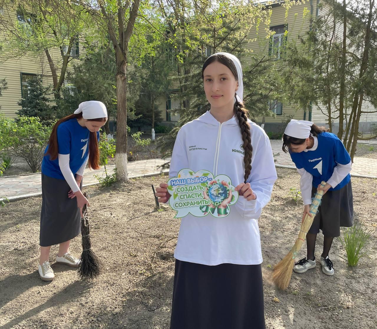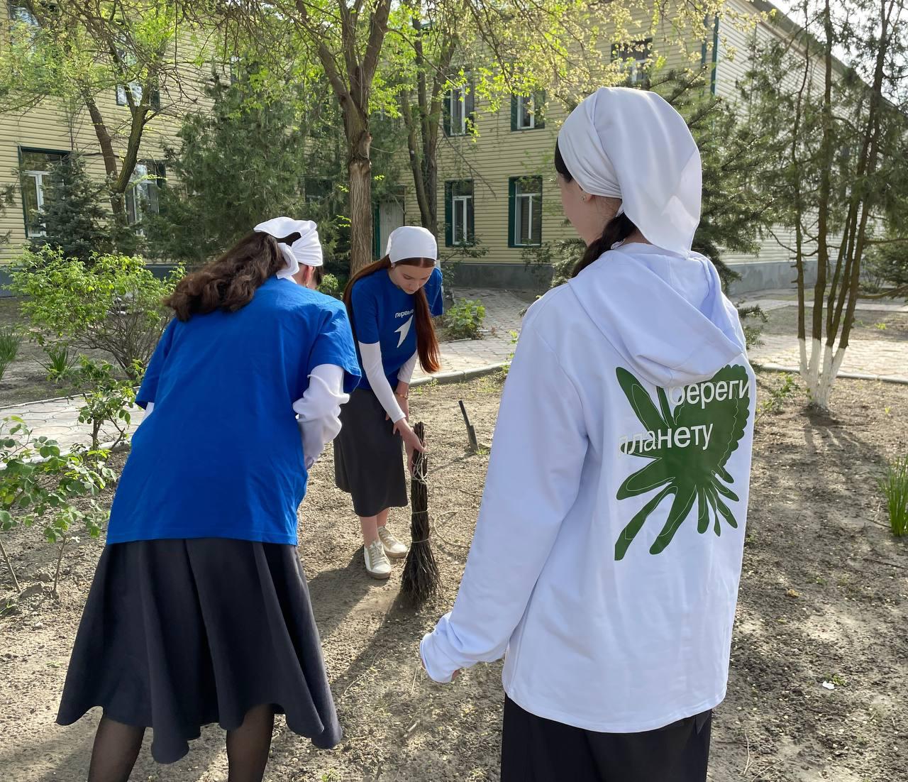 💫✅️В рамках месячника по благоустройству территории и акции "Весенняя неделя добра" активисты Первичного отделения, учащиеся МБОУ «СОШ №3 г.Шелковская» вместе с советником директора по воспитанию Гаибовой А.А., устроили субботник на территории школьного двора.