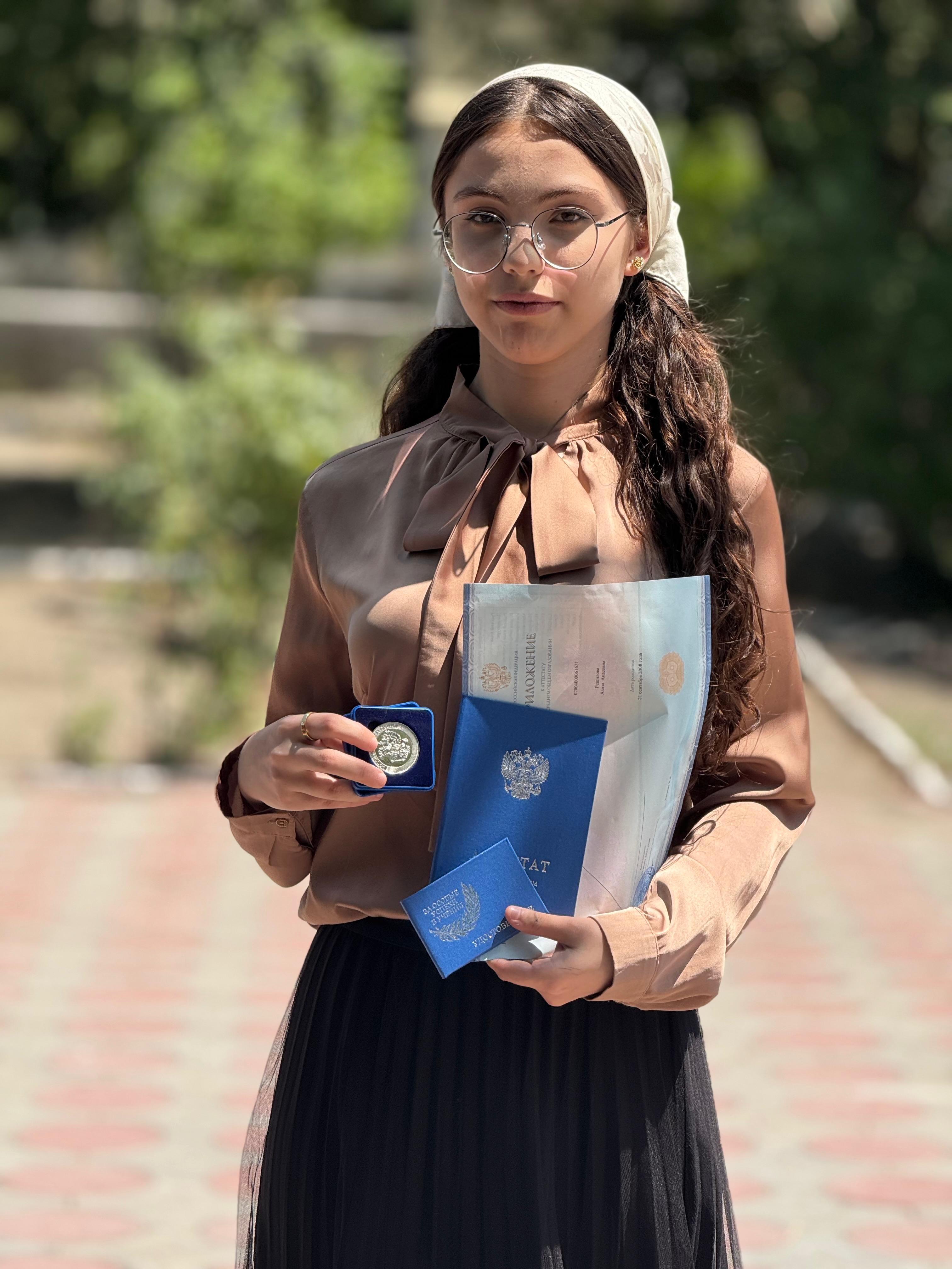 Решидова Азиза - призёр региональных этапов ВсОШ по биологии 2023, 2024 годов, победитель форума «Северный Кавказ» 2024-2025 года в интеллектуальных играх “Что? Где? Когда?” и “Брейн-Ринг”.