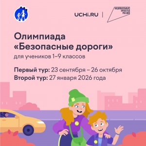 На Учи.ру 23 сентября — 26 октября для дошкольников и учеников 1–9 классов будет проводиться бесплатная всероссийская олимпиада «Безопасные дороги». Организаторами являются Минтранс России, ГУОБДД МВД России, Минпросвещения России, АНО «Национальные приоритеты», Учи.ру при поддержке национального проекта «Инфраструктура для жизни». Олимпиада входит в проект приказа перечня олимпиад Минпросвещения на 2025/26 учебный год. Соревнование направлено на: